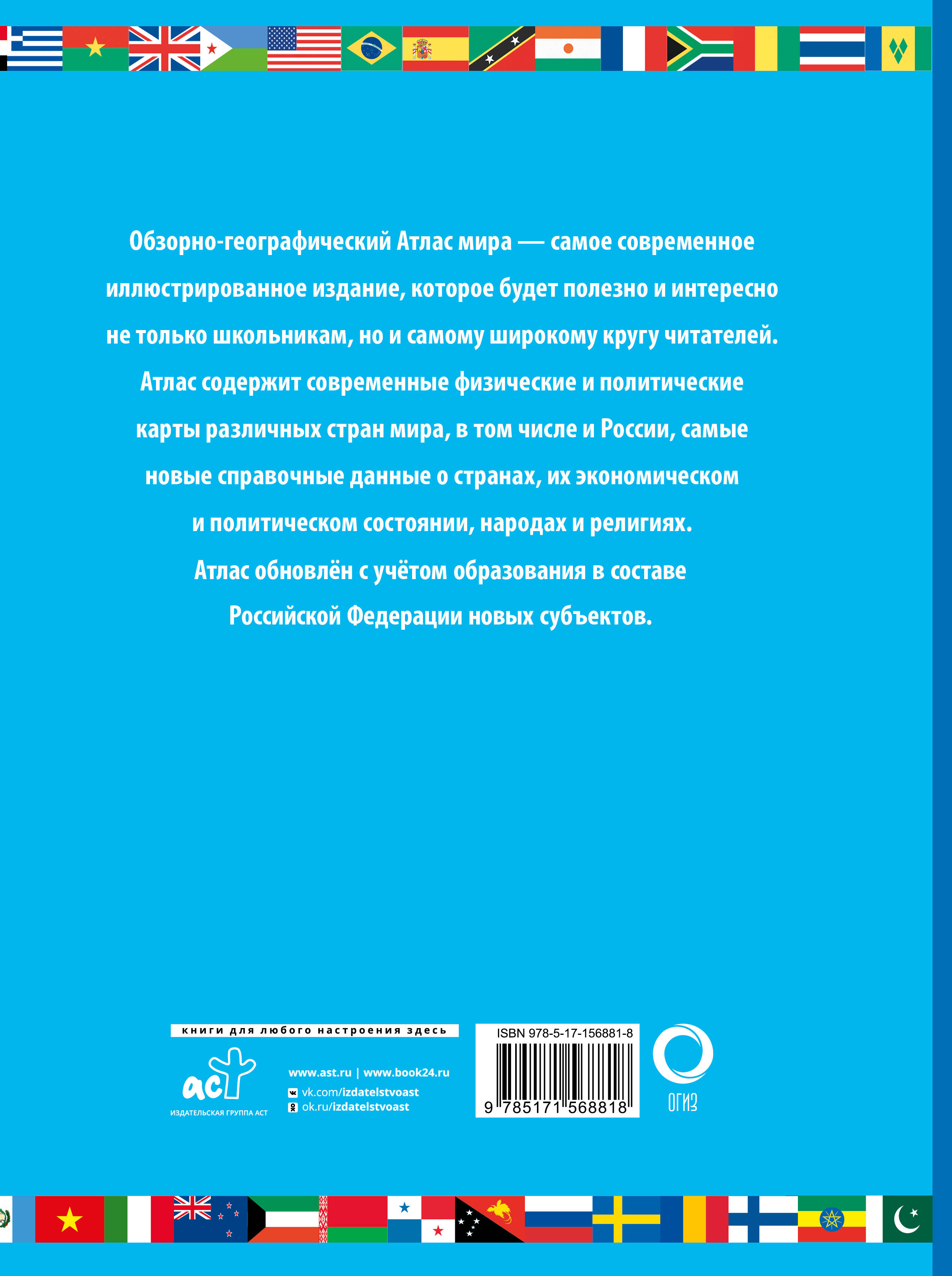 Обзорно-географический Атлас мира - современное картографическое издание, которое будет полезно и интересно не только школьникам, но и самому широкому кругу читателей. Атлас содержит физические и политические карты всех стран мира, справочные данные о странах, их экономическом и политическом состоянии, народах и религиях. В региональном аспекте в атласе освещены природные особенности различных районов планеты. Атлас снабжен подробным указателем географических названий. Россия представлена в атласе в новых границах: с Донецкой и Луганской Народными республиками, Запорожской и Херсонской областями, Республикой Крым и Севастополем.