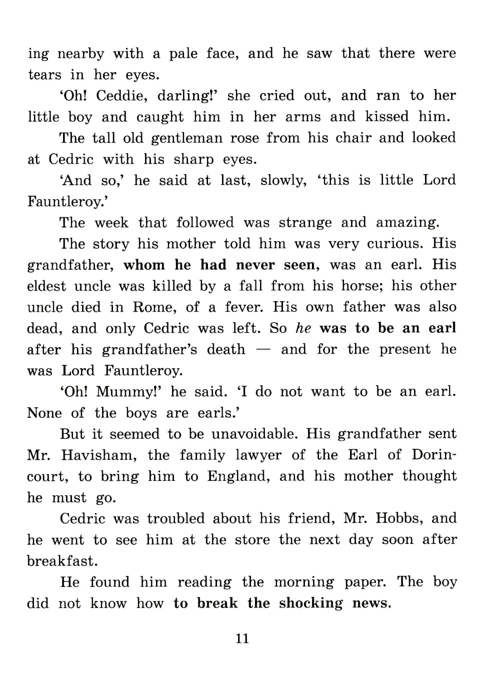 Книга представляет собой адаптацию увлекательного романа знаменитой англо-американской детской писательницы Фрэнсис Бернетт «Приключения маленького лорда». Это удивительная история о маленьком мальчике по имени Седрик, который волею судьбы стал единственным наследником богатого английского лорда. Прожив вместе с матерью в Америке первые семь лет жизни, он переехал к своему дедушке и оказался в мире чопорной английской аристократии. Своим простодушием, здравой рассудительностью и искренней добротой Седрик сумел согреть сердце строгого деда и сделать его жизнь лучше. Данное пособие поможет учащимся средней школы подготовиться к основному государственному экзамену по английскому языку. Текст пособия адаптирован в учебных целях до уровня Elementary. Каждая глава сопровождается комментарием, переводом трудных слов и выражений, а также заданиями с учётом требований ОГЭ. Они направлены не только на проверку понимания текста, но и на отработку лексики, грамматики, а также развитие умений чтения, устной речи и письма. Упражнения позволяют сформировать и развить коммуникативные компетенции, столь необходимые для успешной сдачи итогового экзамена в 9 классе. В конце пособия помещены ответы ко всем заданиям, англо-русский словарь, а также итоговый тест в формате ОГЭ с ключами. Пособие сопровождается аудиозаписью текста, начитанного носителем английского языка. Книга предназначена учащимся 5-8 классов образовательных организаций, а также широкому кругу лиц, изучающих английский язык.| Издательство | Айрис-Пресс |