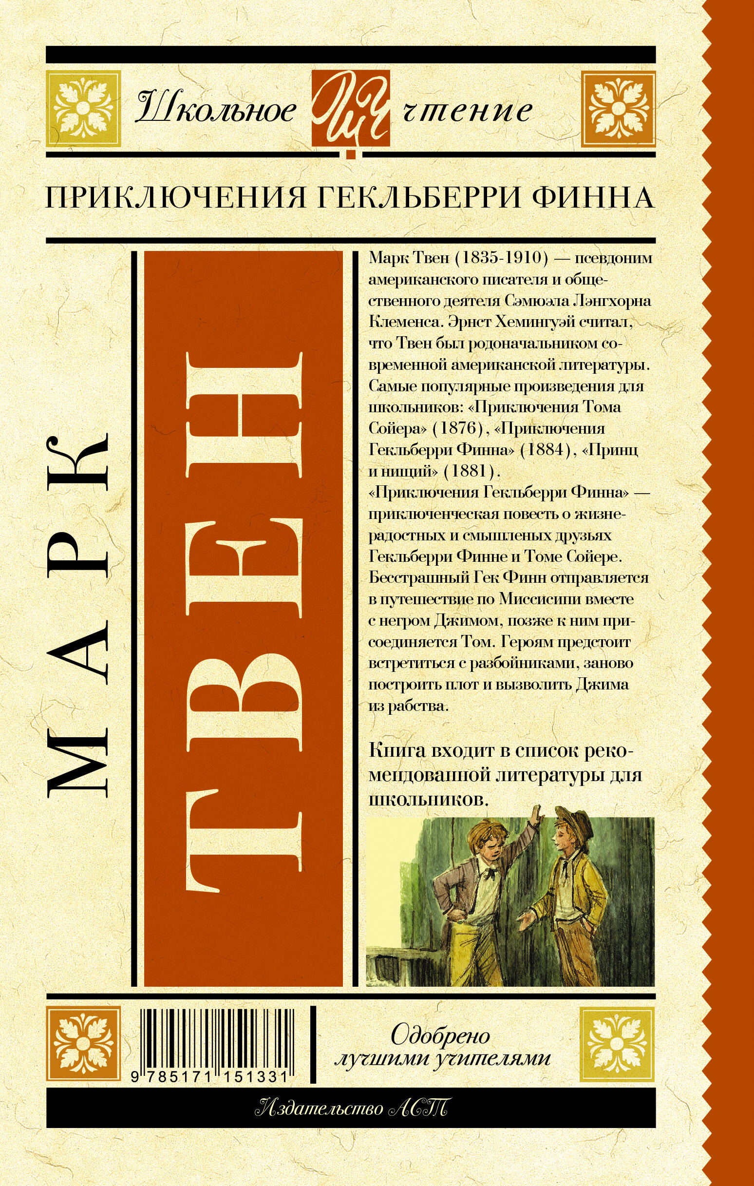 Марк Твен (1835-1910) - псевдоним американского писателя и общественного деятеля Сэмюэла Лэнгхорна Клеменса. Эрнст Хемингуэй считал, что Твен был родоначальником современной американской литературы. Самые популярные произведения для школьников: "Приключения Тома Сойера" (1876), "Приключения Гекльберри Финна" (1884), "Принц и нищий" (1881). "Приключения Гекльберри Финна" - приключенческая повесть о жизнерадостных и смышленых друзьях Гекльберри Финне и Томе Сойере. Бесстрашный Гек Финн отправляется в путешествие по Миссисипи вместе с негром Джимом, позже к ним присоединяется Том. Героям предстоит встретиться с разбойниками, заново построить плот и вызволить Джима из рабства. Книга входит в список рекомендованной литературы для школьников.| Издательство | ИЗДАТЕЛЬСТВО "АСТ" |
