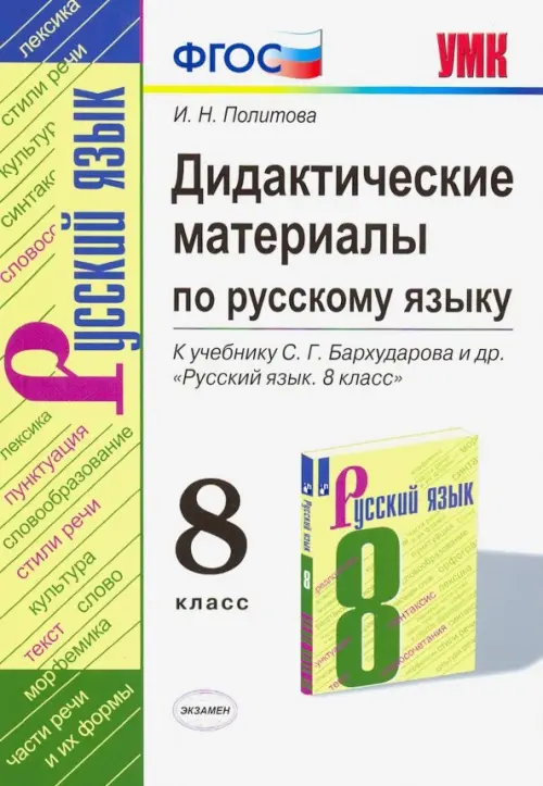 Аннотация: Русский язык. 8 класс. УМК. Дидактические материалы к учебнику С.Г. Бархударова. ФГОС