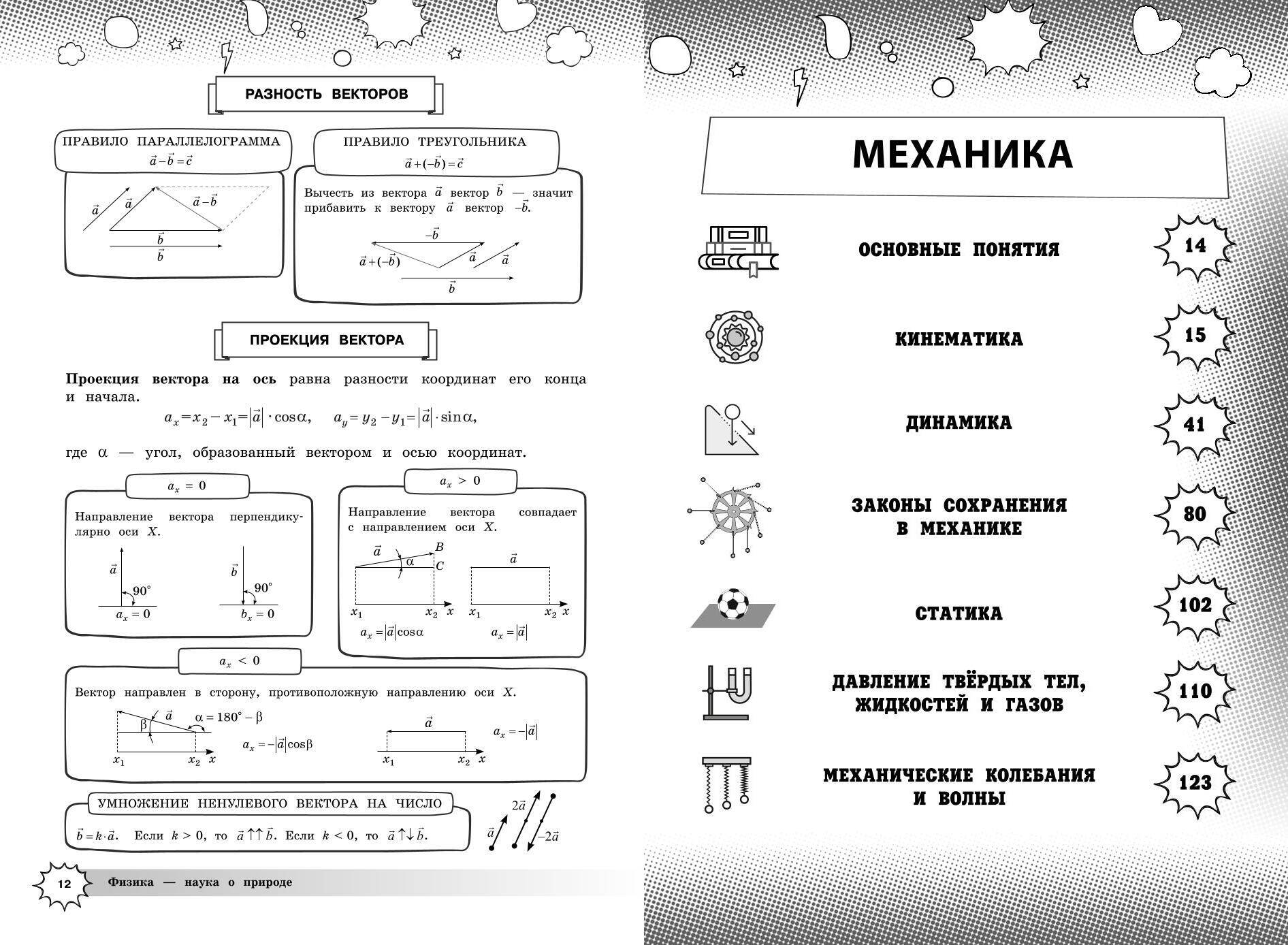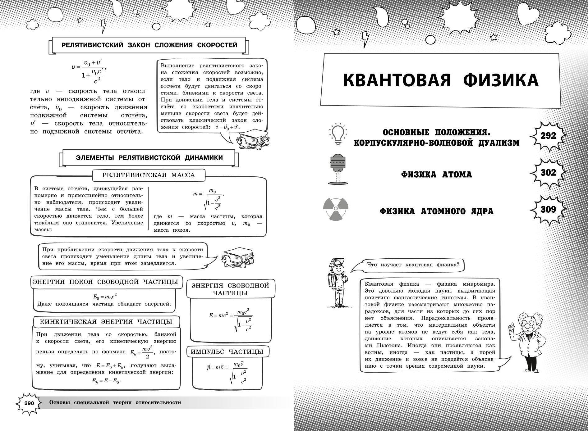 Иллюстрированный справочник по физике станет незаменимым помощником школьника при подготовке к урокам, ОГЭ и ЕГЭ! Если вы путаетесь в законах, понятиях и не можете уложить в голове весь объёмный материал за школьный курс, то это пособие идеально вам подойдёт. В книге нет длинных и скучных текстов - весь материал разбит по коротким рубрикам, таблицам и схемам, которые дополняют иллюстрации. Важная информация подаётся через вопросно-ответную форму с элементами комиксов. Такая форма изложения теории сделает обучение не только эффективным, но и интересным. В книге представлены разделы «Механика», «Молекулярная физика», «Электродинамика», «Оптика», «Теория относительности», «Квантовая физика». Помимо этого, пособие содержит тренировочные задания с ответами и подробными решениями. Справочник станет отличным подарком ученикам средней и старшей школы, которые только начинают изучать физику или хотят углубить свои знания. Книга прослужит не один год благодаря интегральному переплёту и качественной полиграфии. Пособие будет полезно не только школьникам, но и учителям при составлении плана уроков, а также родителям, которые хотят освежить в памяти школьную программу.| Издательство | ООО "Издательство "Эксмо" |