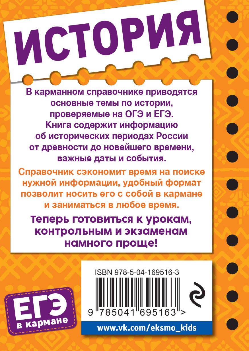 В карманном справочнике систематизированы основные теоретические сведения по истории России от древности до новейшего времени, приводятся важные даты и события. Справочник будет полезен учащимся при подготовке к урокам, контрольным работам, а также экзаменам. Несмотря на компактный размер, справочник ёмкий по содержанию, в нём сконцентрирована только самая нужная для экзамена информация. Вы можете брать его с собой и заниматься в любое время и в любом месте!| Издательство | Эксмо |