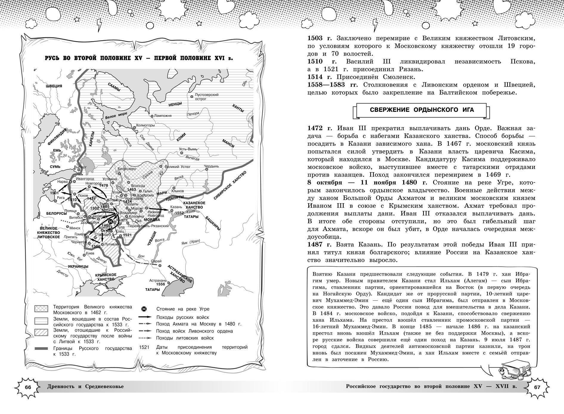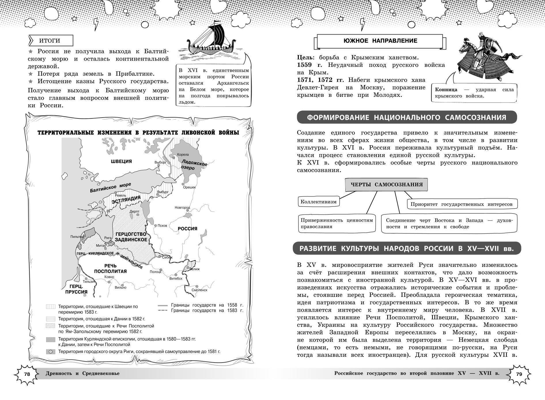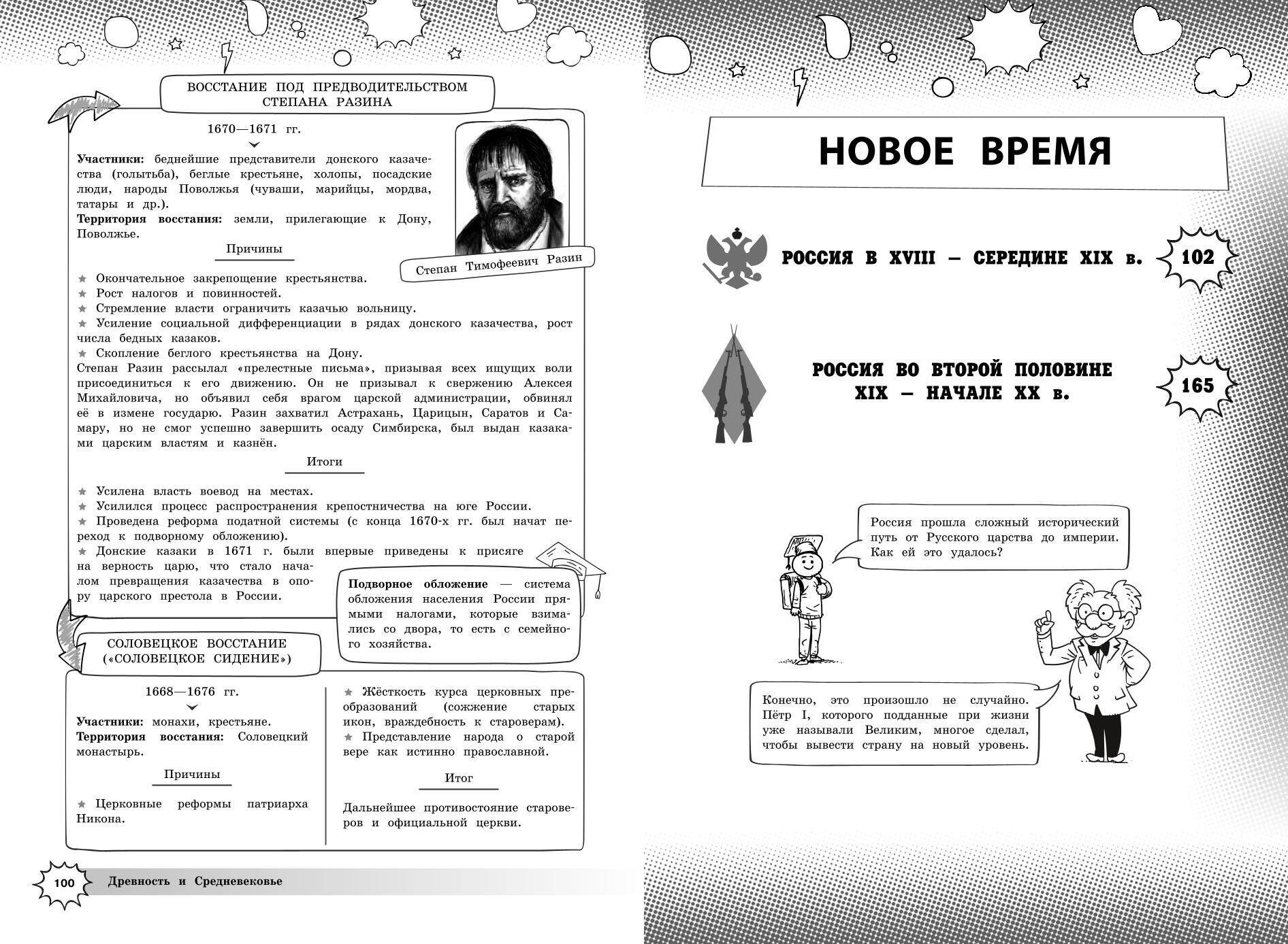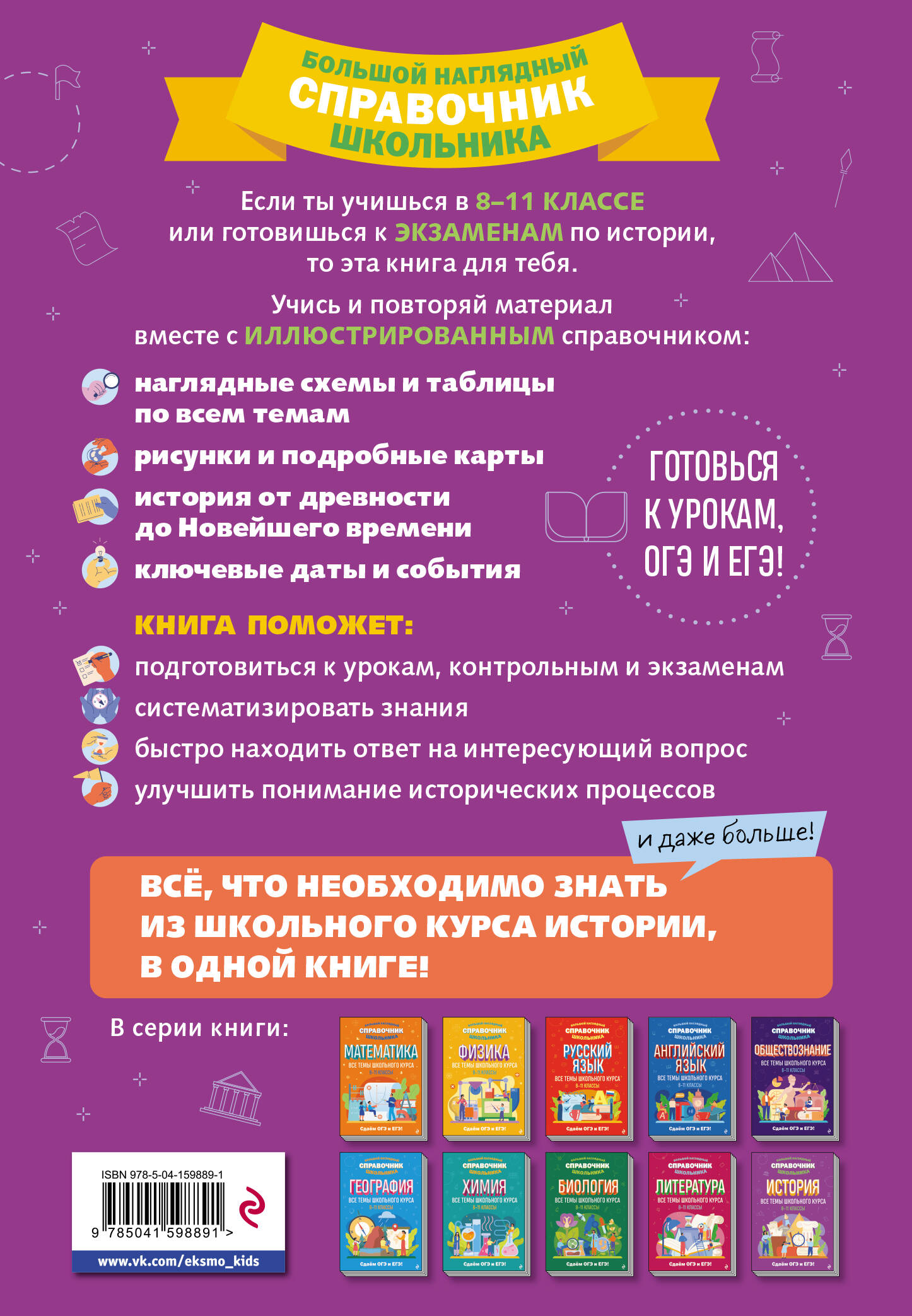 Иллюстрированный справочник по истории России станет незаменимым помощником школьника при подготовке к урокам, ОГЭ и ЕГЭ! Если вы путаетесь в правилах, понятиях и не можете уложить в голове весь объёмный материал за школьный курс, то это пособие идеально вам подойдёт. В книге нет длинных и скучных текстов - весь материал разбит по коротким рубрикам, таблицам и схемам, которые дополняют иллюстрации. Важная информация подаётся через вопросно-ответную форму с элементами комиксов. Такая форма изложения теории сделает обучение не только эффективным, но и интересным. В книге представлены сведения по истории от древности до Новейшего времени, а также подробные карты и списки ключевых дат и событий. Справочник станет отличным подарком ученикам средней и старшей школы, которые хотят углубить свои знания. Книга прослужит не один год благодаря интегральному переплёту и качественной полиграфии. Пособие будет полезно не только школьникам, но и учителям при составлении плана уроков, а также родителям, которые хотят освежить в памяти школьную программу.