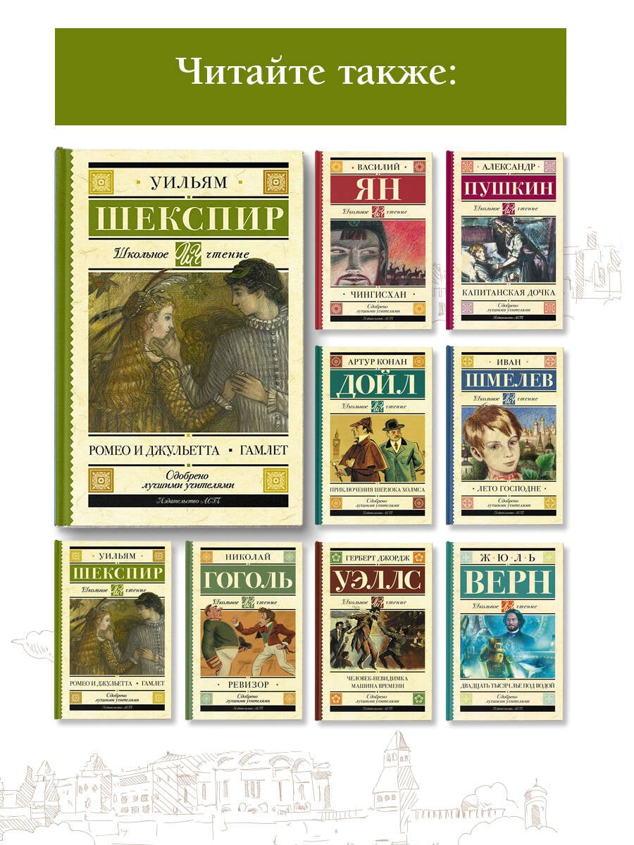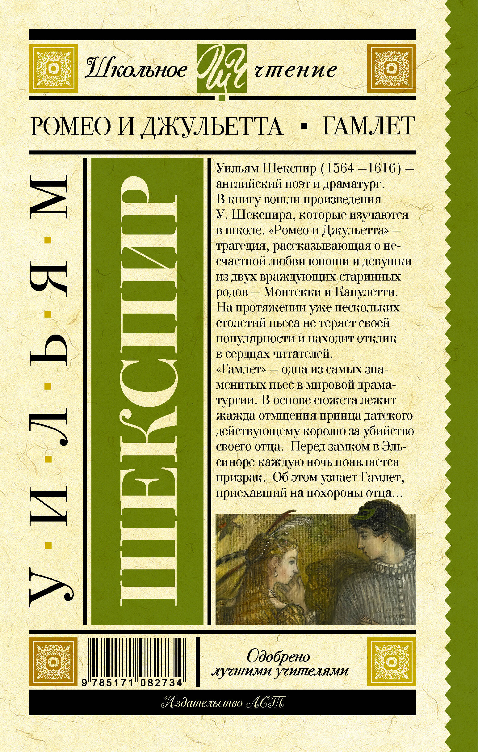 В книгу вошли произведения У. Шекспира, которые изучаются в школе, - «Ромео и Джульетта», трагедия, рассказывающая о любви юноши и девушки из двух враждующих старинных родов - Монтекки и Капулетти, и одна из самых знаменитых пьес в мировой литературе - «Гамлет».| Издательство | ИЗДАТЕЛЬСТВО "АСТ" |