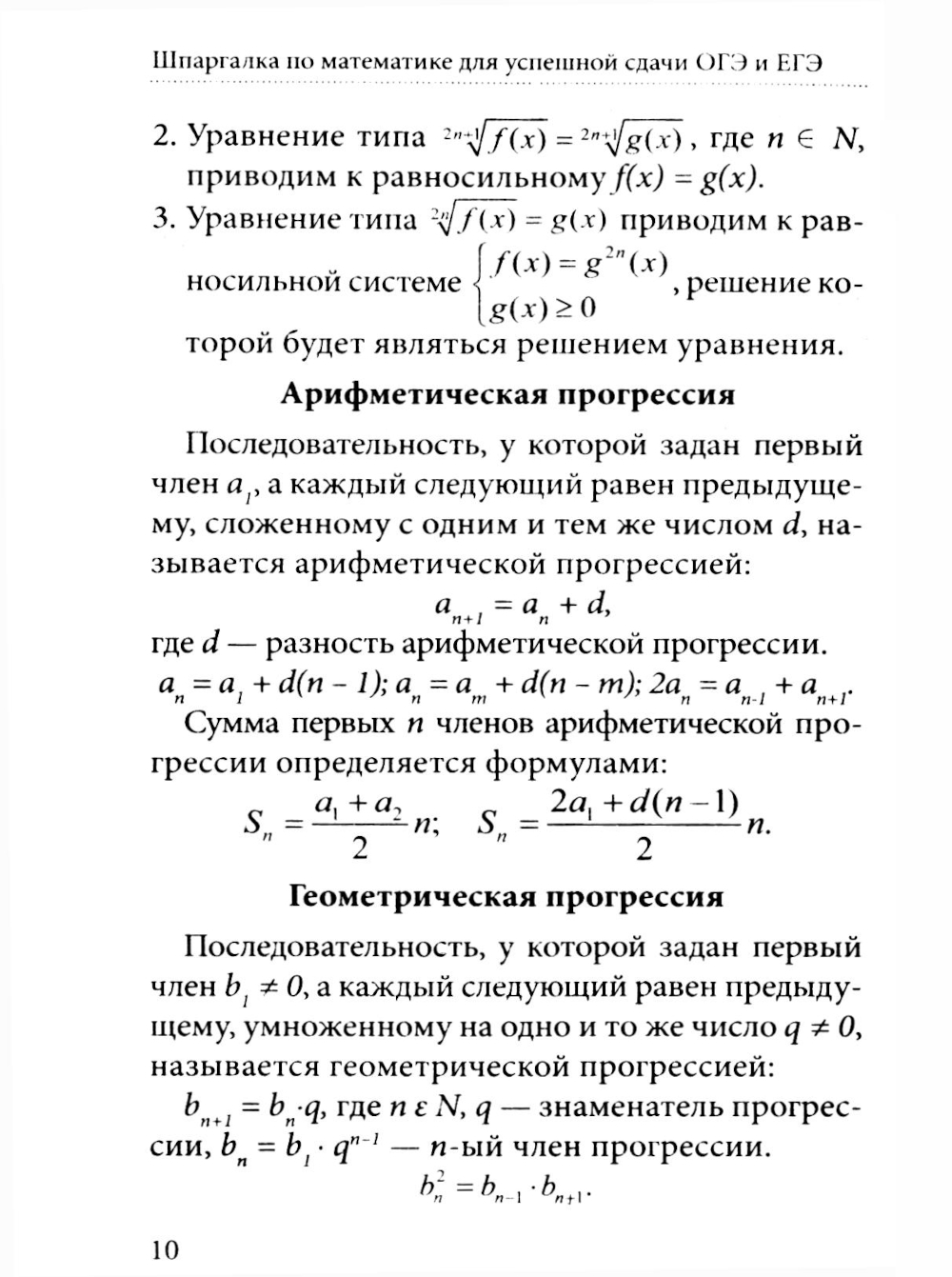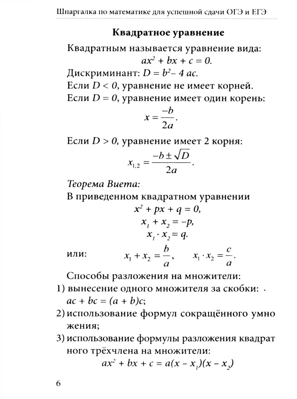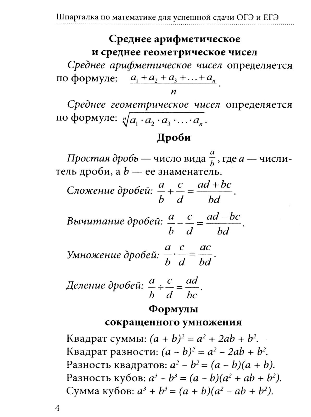 Шпаргалка по математике для успешной сдачи ОГЭ и ЕГЭ
