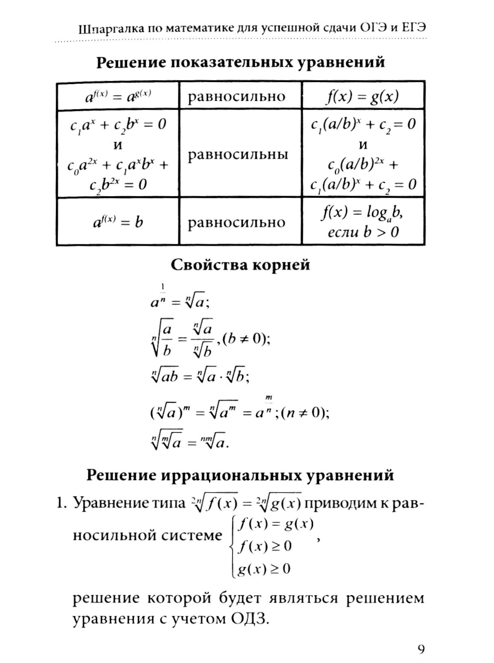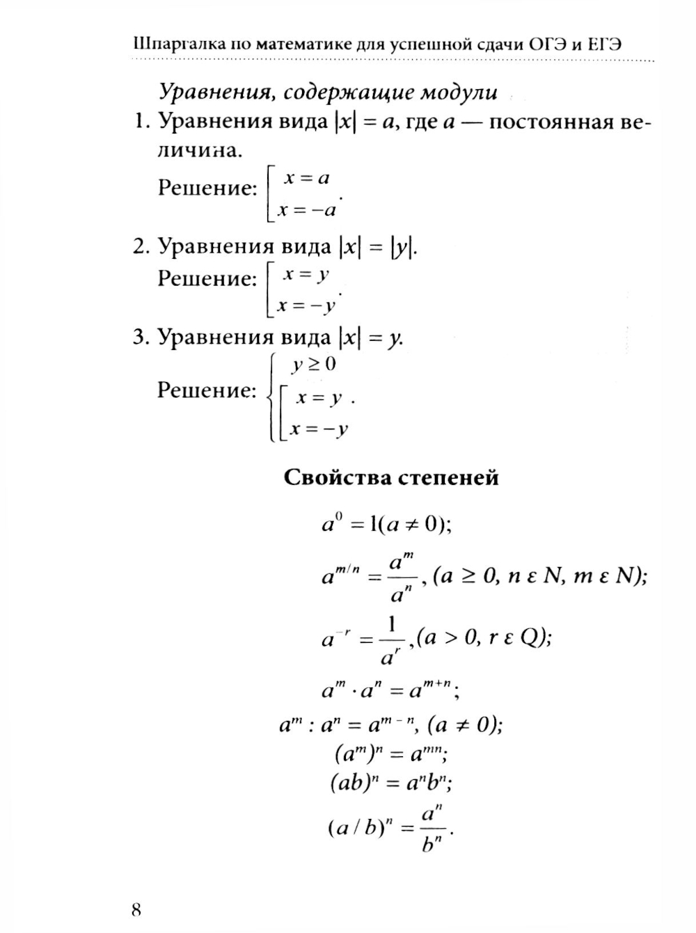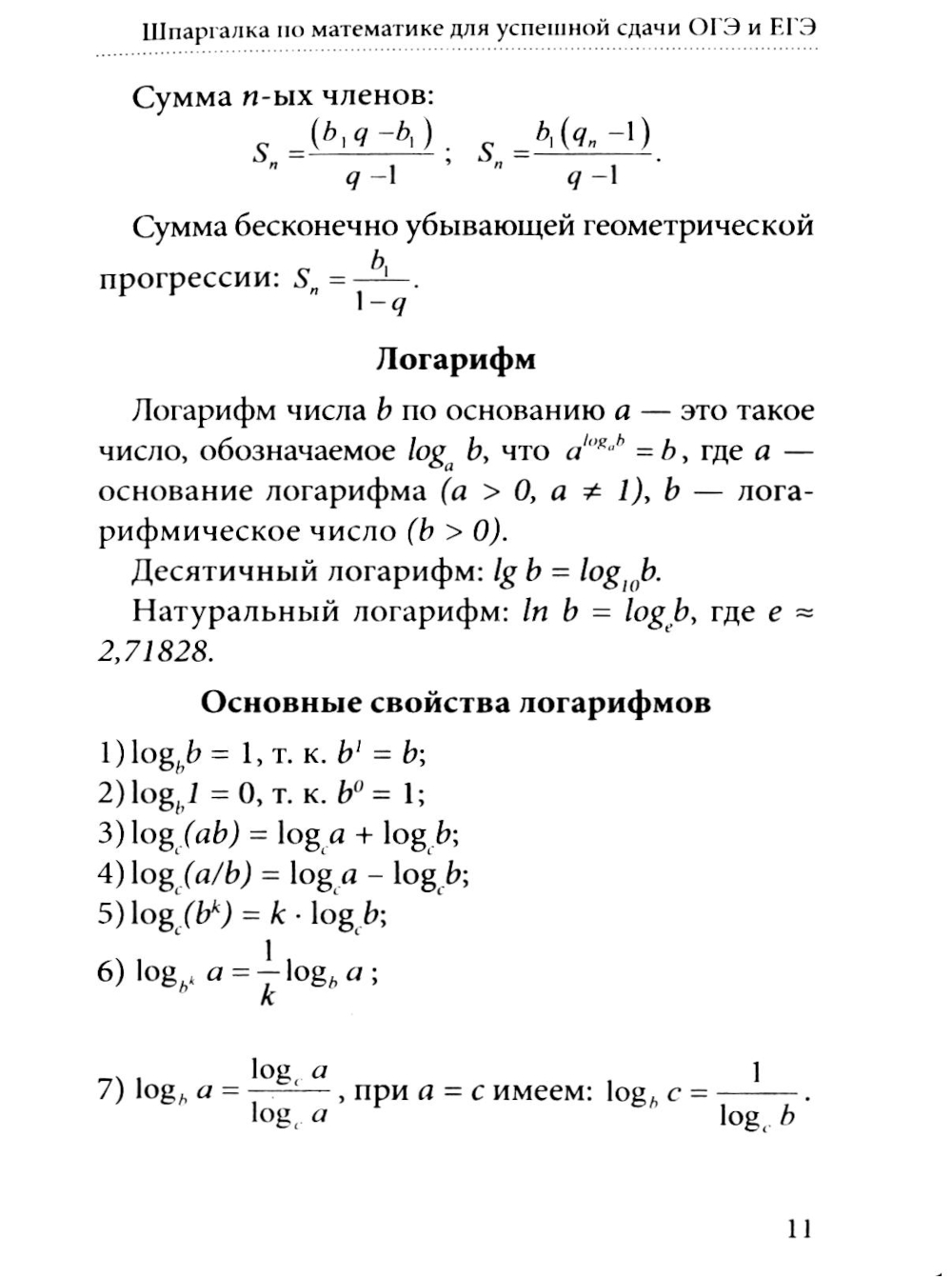 Шпаргалка по математике для успешной сдачи ОГЭ и ЕГЭ