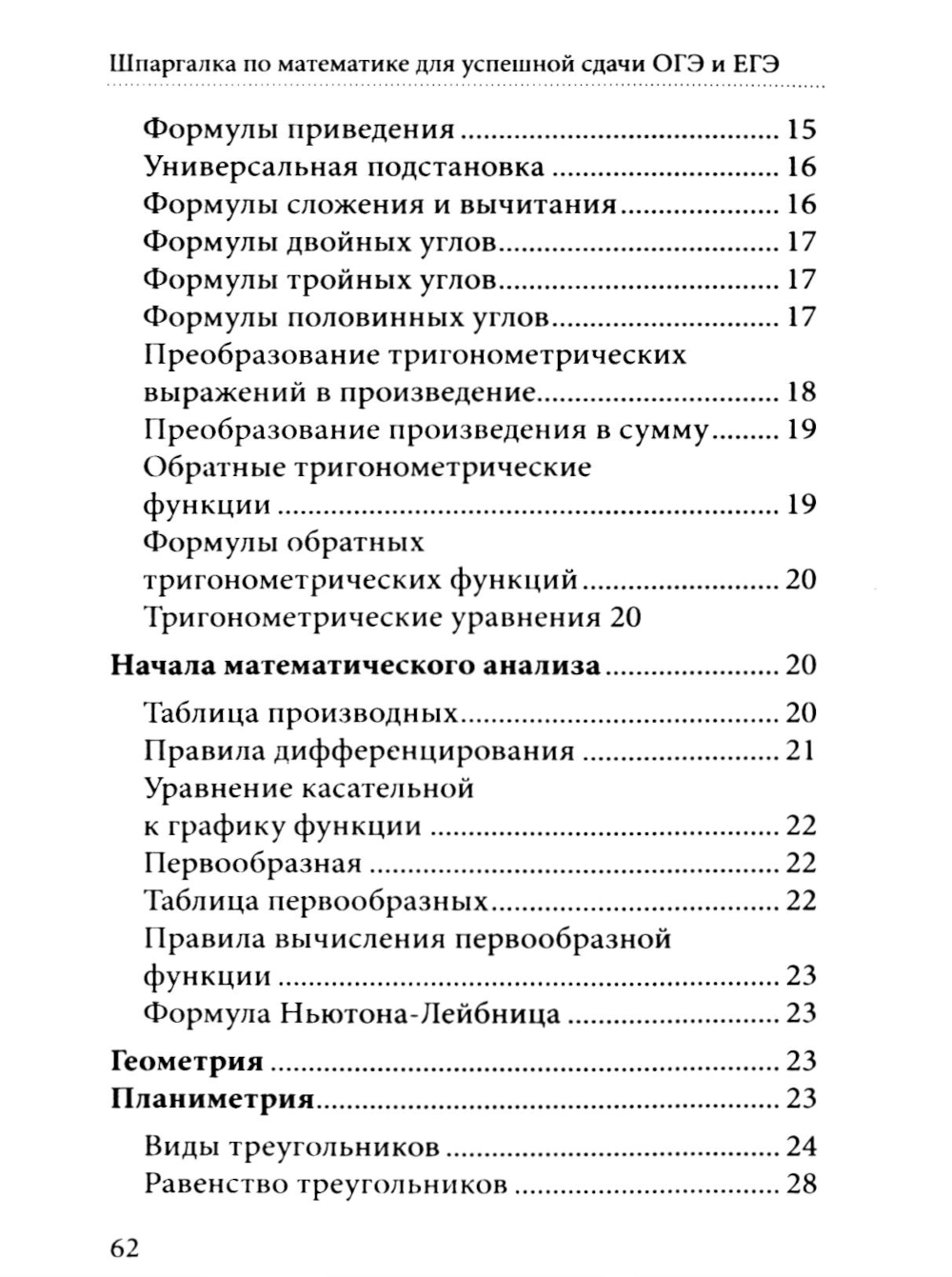 Аннотация: Шпаргалка по математике для успешной сдачи ОГЭ и ЕГЭ