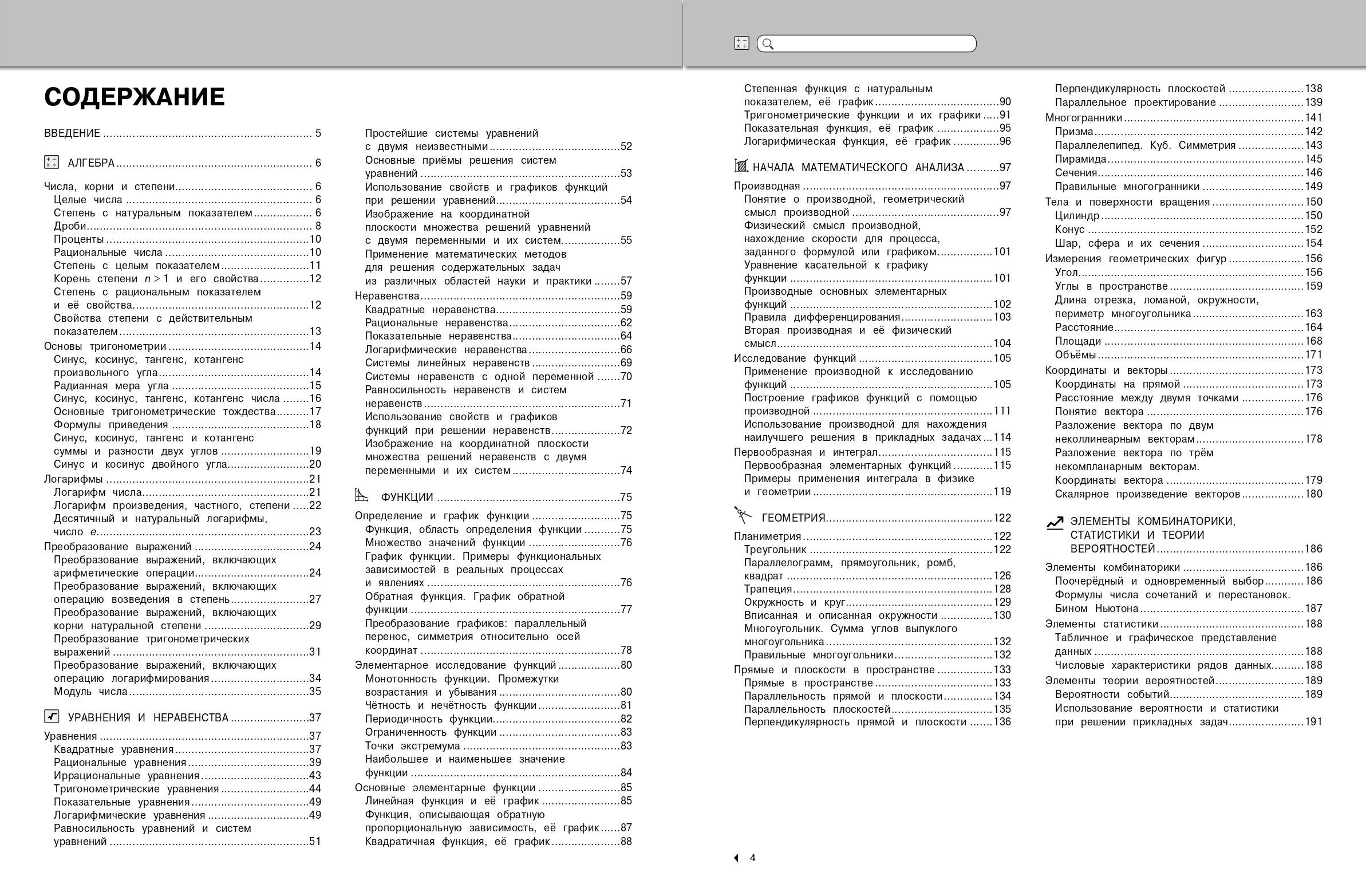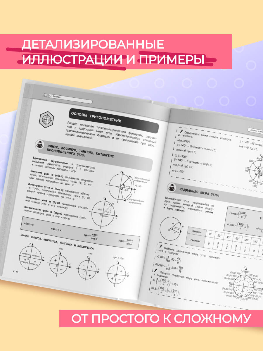 Пособие поможет быстро и эффективно подготовится к урокам, различным формам текущего и промежуточного контроля, а также к экзаменам. В книге в наглядной и доступной форме приводятся основные сведения за весь школьный курс математики. В громоздких учебниках порой бывает сложно найти ответ на какой-то конкретный вопрос. А в данном издании представлена действительно нужная и систематизированная информация, материал изложен последовательно, от простого к сложному, дополняется иллюстрациями, примерами, наглядными схемами и таблицами. В этой книге для школьников можно найти все основные разделы предмета: «Алгебра», «Уравнения и неравенства», «Функции», «Начала математического анализа», «Геометрия», «Элементы комбинаторики, статики и теории вероятностей». Справочник обеспечит знание и понимание всех, даже самых сложных тем школьной программы. В нем каждый ученик 5-11 классов найдет много полезного для своего образования, обретет уверенность на уроках, контрольных, ОГЭ и ЕГЭ.| Издательство | ООО "Издательство "Эксмо" |