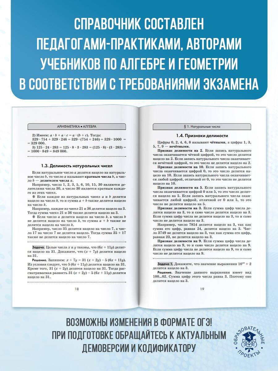 Справочник содержит материал курса "Математика" в объёме, проверяемом на основном государственном экзамене. Структура книги соответствует современному кодификатору элементов содержания по предмету, на основе которого формируются экзаменационные задания - контрольные измерительные материалы ОГЭ. Справочник состоит из двух глав: "Арифметика. Алгебра" и "Геометрия". Помимо теоретического материала в справочнике представлено значительное количество разобранных примеров, иллюстрирующих основные методы и приёмы решения задач. Ко всем заданиям в конце пособия даны ответы для самопроверки. Работа с пособием позволит повторить все основные темы курса математики за 5-9 классы и успешно подготовиться к сдаче ОГЭ.| Издательство | ИЗДАТЕЛЬСТВО "АСТ" |