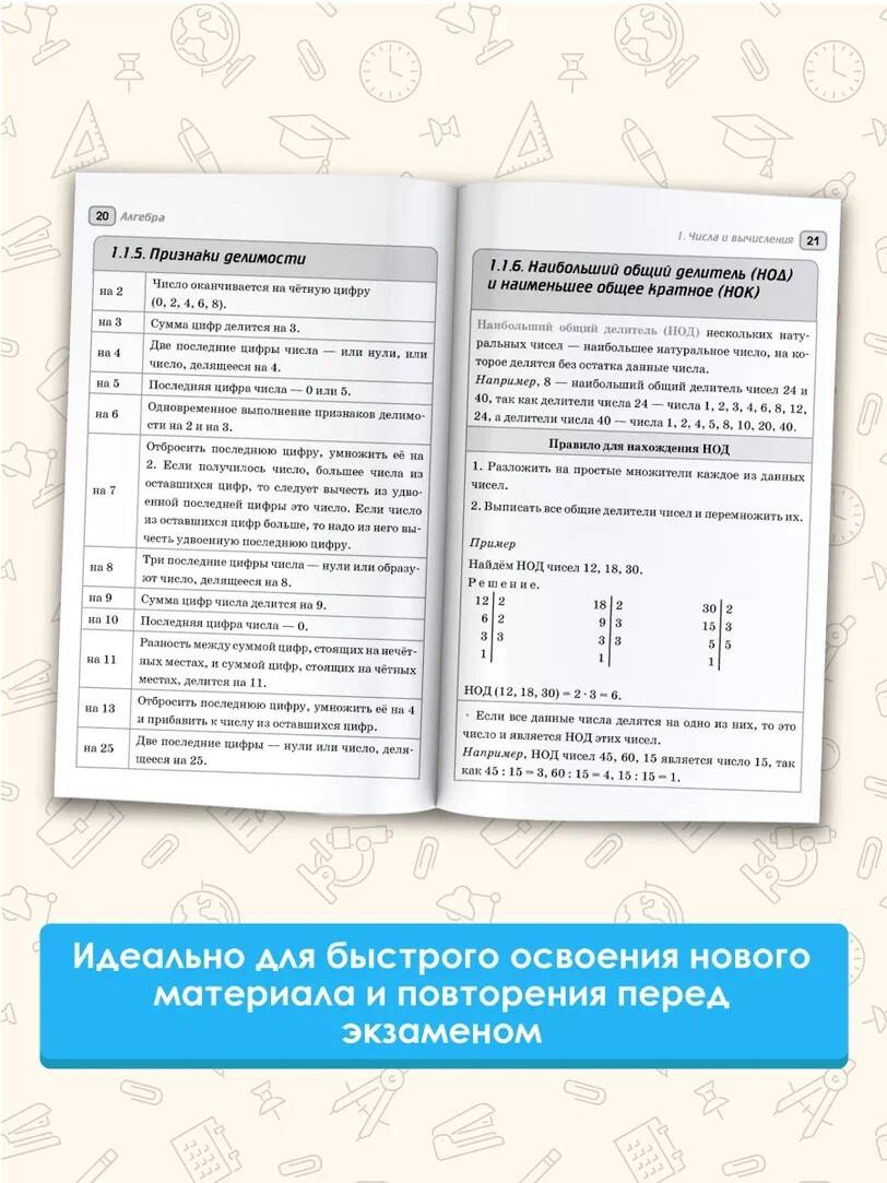 Справочник содержит материал курса "Математика" в объёме, проверяемом на основном государственном экзамене. Структура книги соответствует современному кодификатору элементов содержания по предмету, на основе которого формируются экзаменационные задания. Справочник состоит из двух глав. Первая глава "Алгебра" соответствует содержанию курсов математики 5-6 классов, алгебры 7-9 классов; вторая глава "Геометрия" - содержанию курса планиметрии 7-9 классов. Наглядность и доступность подачи материала в табличной форме позволяет легко и быстро обощить, систематизировать и повторить материал школьного курса математики за 5-9 классы и успешно подготовиться к сдаче ОГЭ.| Издательство | ИЗДАТЕЛЬСТВО "АСТ" |