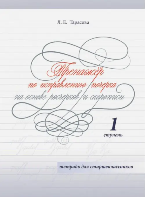 В основе тетради "Исправляю почерк" (для старшеклассников), ступень 1 лежат овалы и росчерки. Росчерки, в основу которых положены полуовалы, овалы и петли, способствуют постановке правильной формы буквы и установлению наклона при графическом начертании слова. Для исправления графического начертания должны быть соблюдены следующие условия: 1) исполнение овала снизу; 2) принятие новых вариантов исполнения букв: р, х, ж (их исполнения приближены к скорописному варианту); 3) все овалы должны быть закрыты (в, ь, ы); 4) варианты исполнения букв с петлёй (в, ь, ы) сняты. Структура тетради понятна и доступна: более бледное исполнение нужно обвести, рядом написать такое же самостоятельно. Начало исполнения росчерков выделено цветом. Красный цвет - узор - его нужно продолжить до конца строки, не отрывая руки (кроме буквы б). В конце тетради представлены образцы слов, которые надо написать самостоятельно. Тетрадь составлена благодаря накопленному опыту работы с учащимися, у которых сложился неверный графический характер.