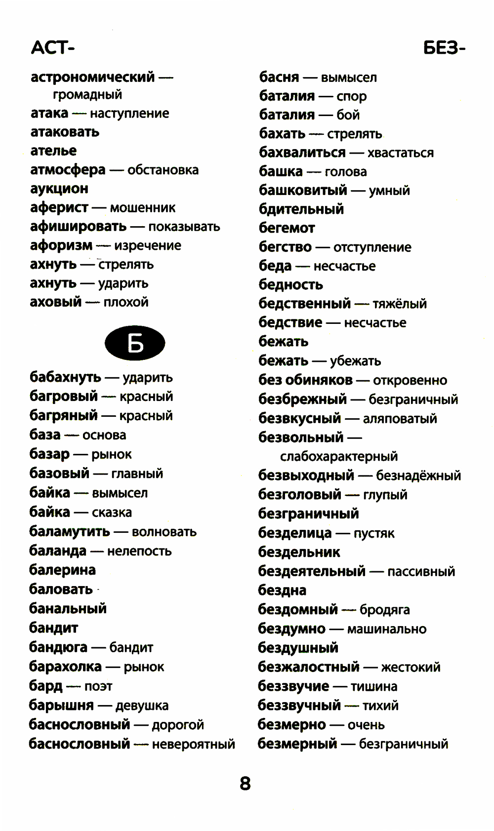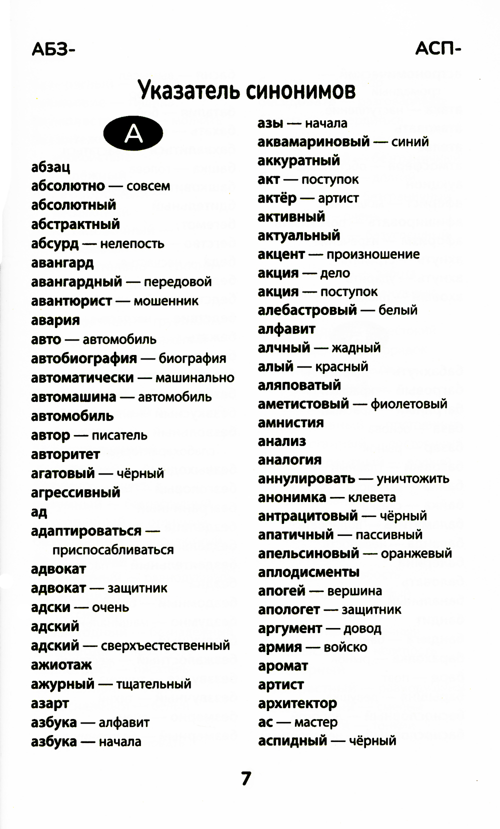 Словарь синонимов включает более 3 000 синонимов, указатель синонимов позволит найти нужную словарную статью.