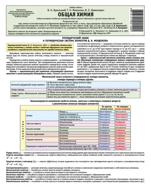 Буклет составлен на основе учебной программы для учреждений общего среднего образования. В нем содержится тщательно отобранный и детально систематизированный материал, являющийся основой для успешного изучения школьного курса химии; представлен в виде оригинальных подробных схем и таблиц с текстовыми и графическими пояснениями и многочисленными примерами уравнений реакций. Данное пособие будет содействовать запоминанию основной терминологии, пониманию существенных признаков различных понятий, усвоению фактического материала, обобщению знаний; является незаменимым дополнением к школьным учебникам и может быть использован при изучении школьного курса химии на базовом, профильном и углубленном уровнях, для систематизации знаний при подготовке к олимпиадам по химии, экзаменам и к централизованному тестированию.