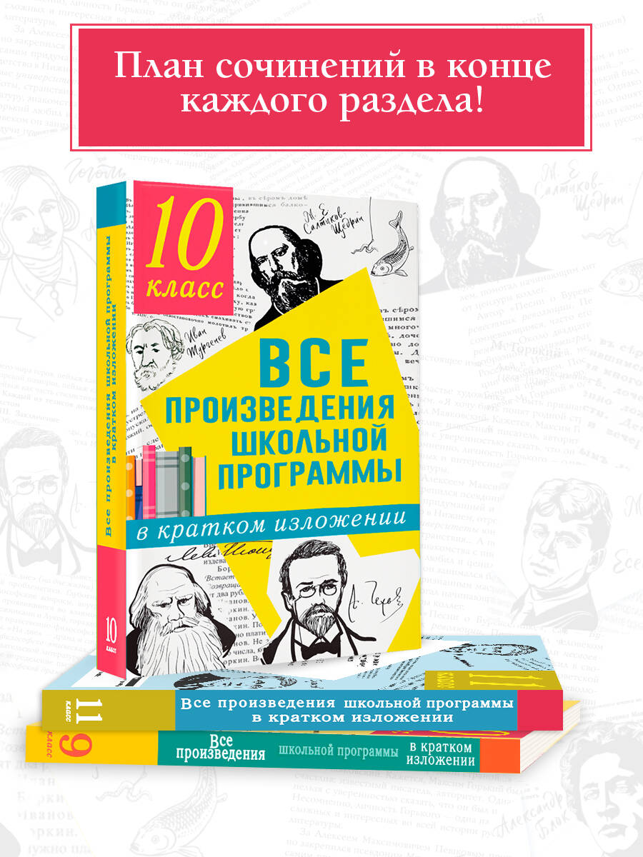 Пособие адресовано учащимся, и призвано помочь сориентироваться в художественном тексте, найти в нём основные, значимые эпизоды и образы и определить круг идей и проблем, волнующих писателя, осознать авторское и своё отношение к ним. Структура пособия помогает составить общее представление о творчестве того или иного писателя и произведения в целом. В пособие включены произведения, входящие в программу 10 класса, текст представлен в виде пересказа. Представлены также цитаты из критических статей, необходимые для работы над сочинением. Примерные варианты тем сочинений по тому или иному произведению помогают школьникам очертить круг проблем и вопросов, которые традиционно изучаются в школьном курсе литературы. Каждый раздел завершается развёрнутым планом сочинения по одной из названных тем. С помощью пособия учащийся сможет без труда подготовиться как к школьному уроку литературы, так и к выполнению экзаменационных заданий. В качестве вспомогательного материала пособие может быть рекомендовано старшеклассникам в процессе подготовки к ЕГЭ.| Издательство | АСТ |