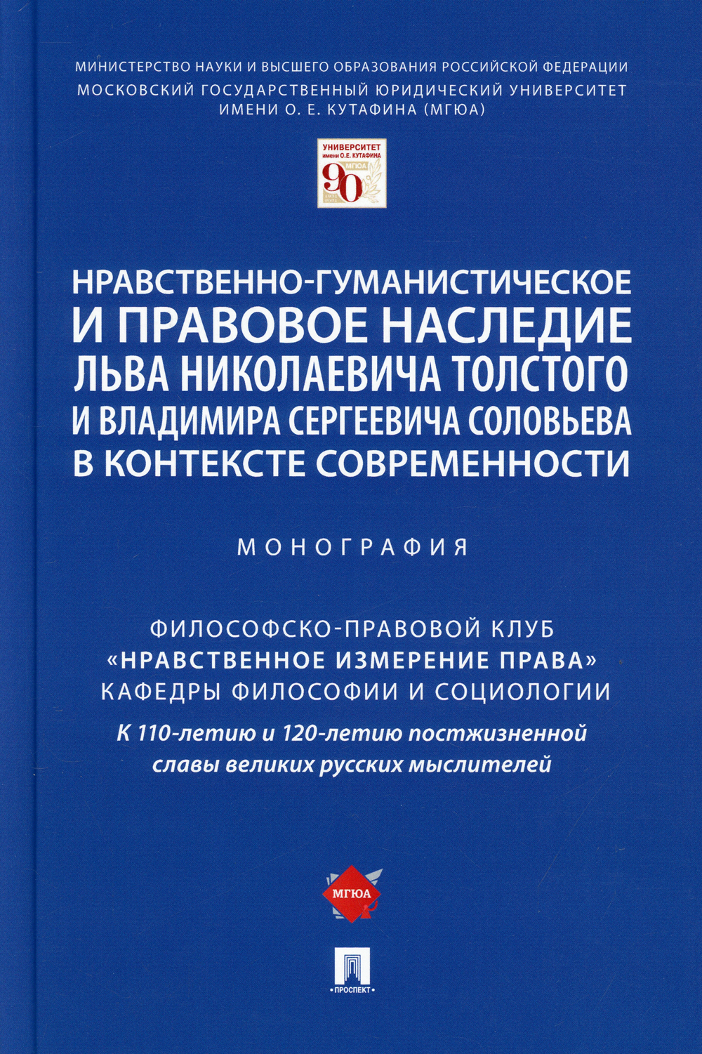 Настоящая коллективная монография в основном создана по результатам одноименной Всероссийской научной конференции, состоявшейся в Университете имени О. Е. Кутафина (МГЮА) 12 ноября 2020 г. Мероприятие было организовано философско-правовым клубом «Нравственное измерение права» под руководством доктора философских наук, профессора кафедры философии и социологии В. М. Артемова. В связи со стратегией усиления нравственного измерения и очеловечивания права в книге отражены результаты научных исследований нравственно-гуманистического и правового наследия Льва Николаевича Толстого и Владимира Сергеевича Соловьева в контексте современности.