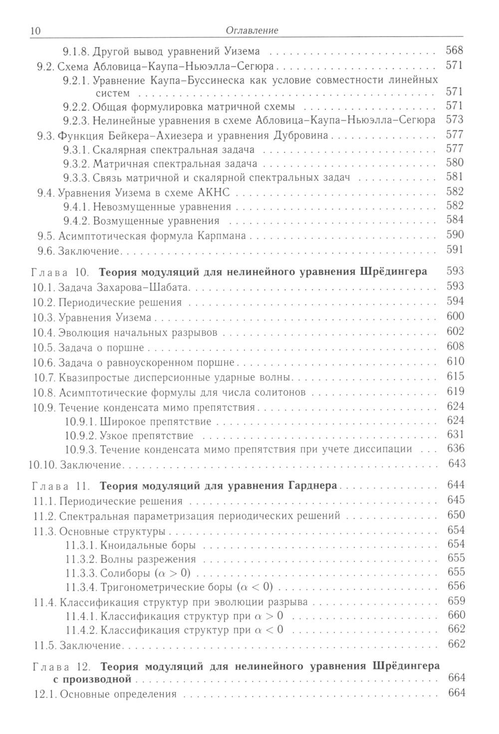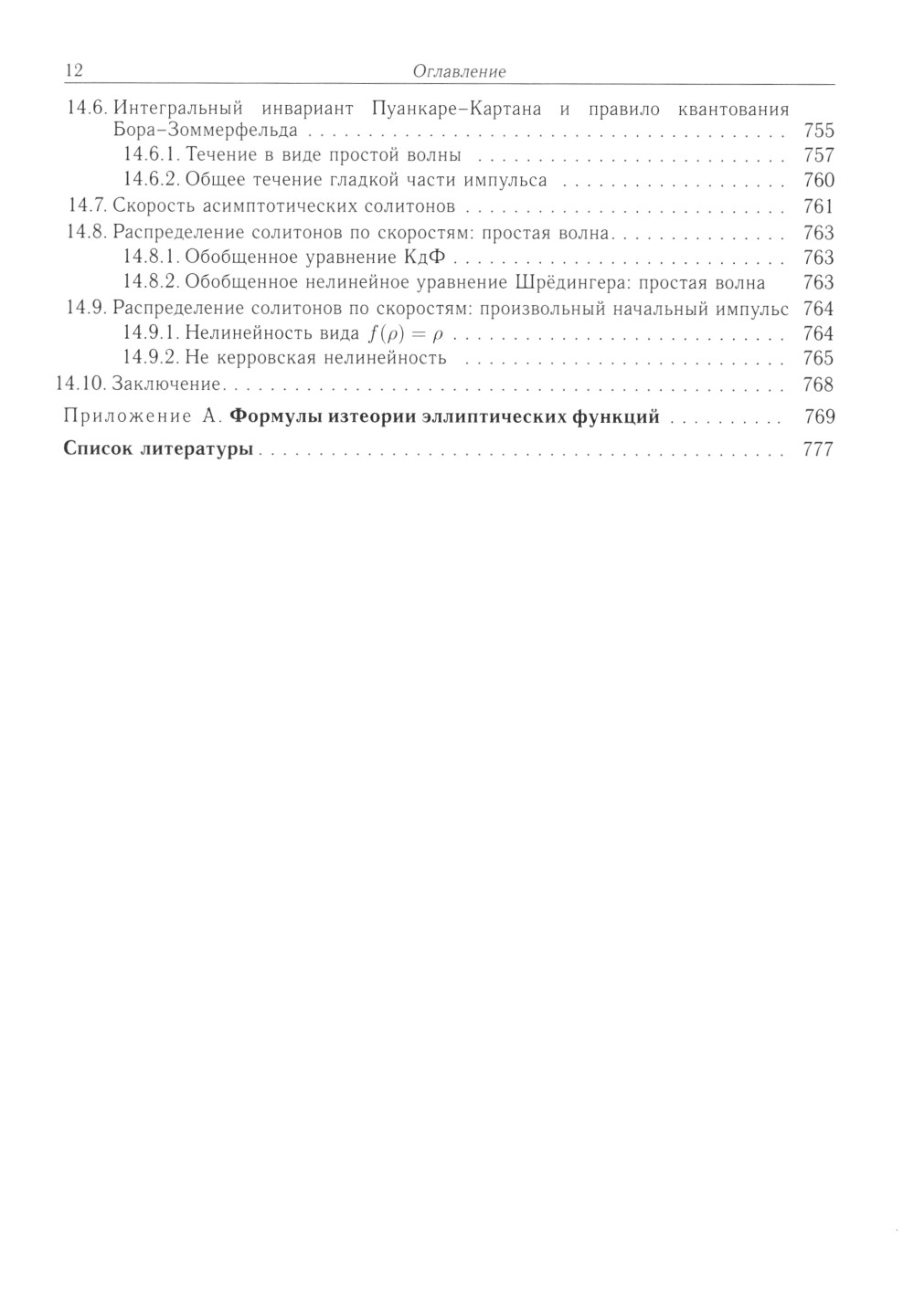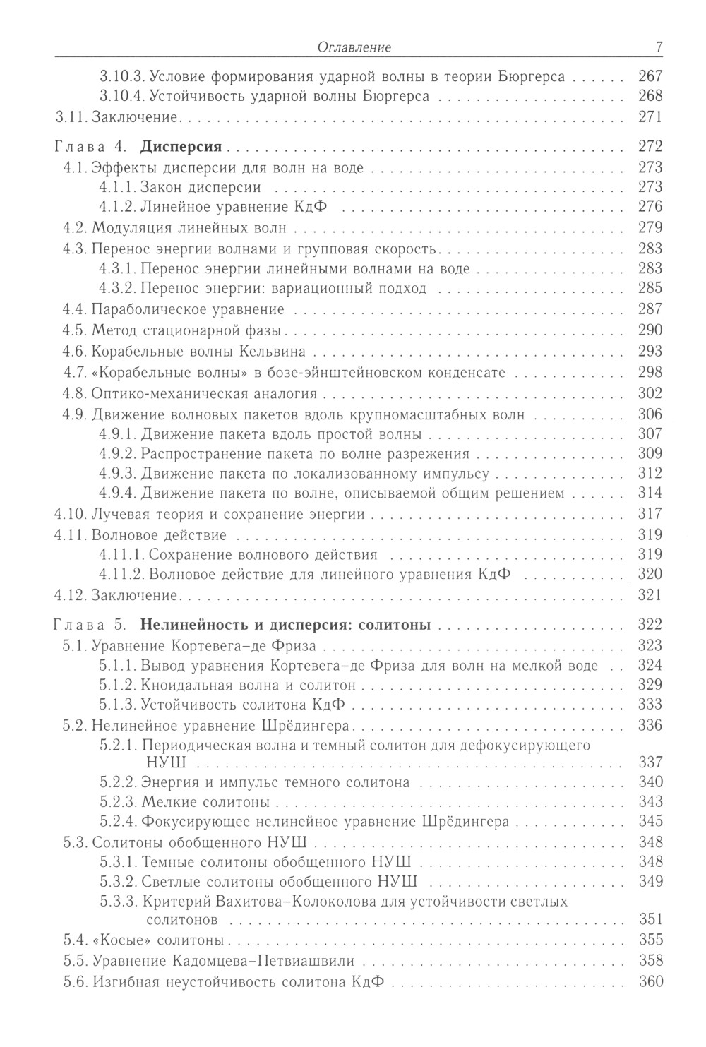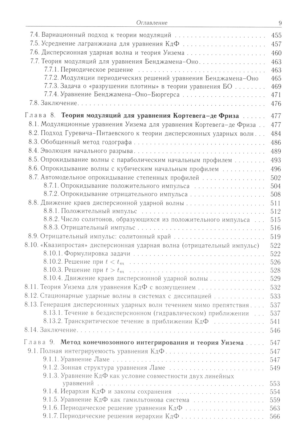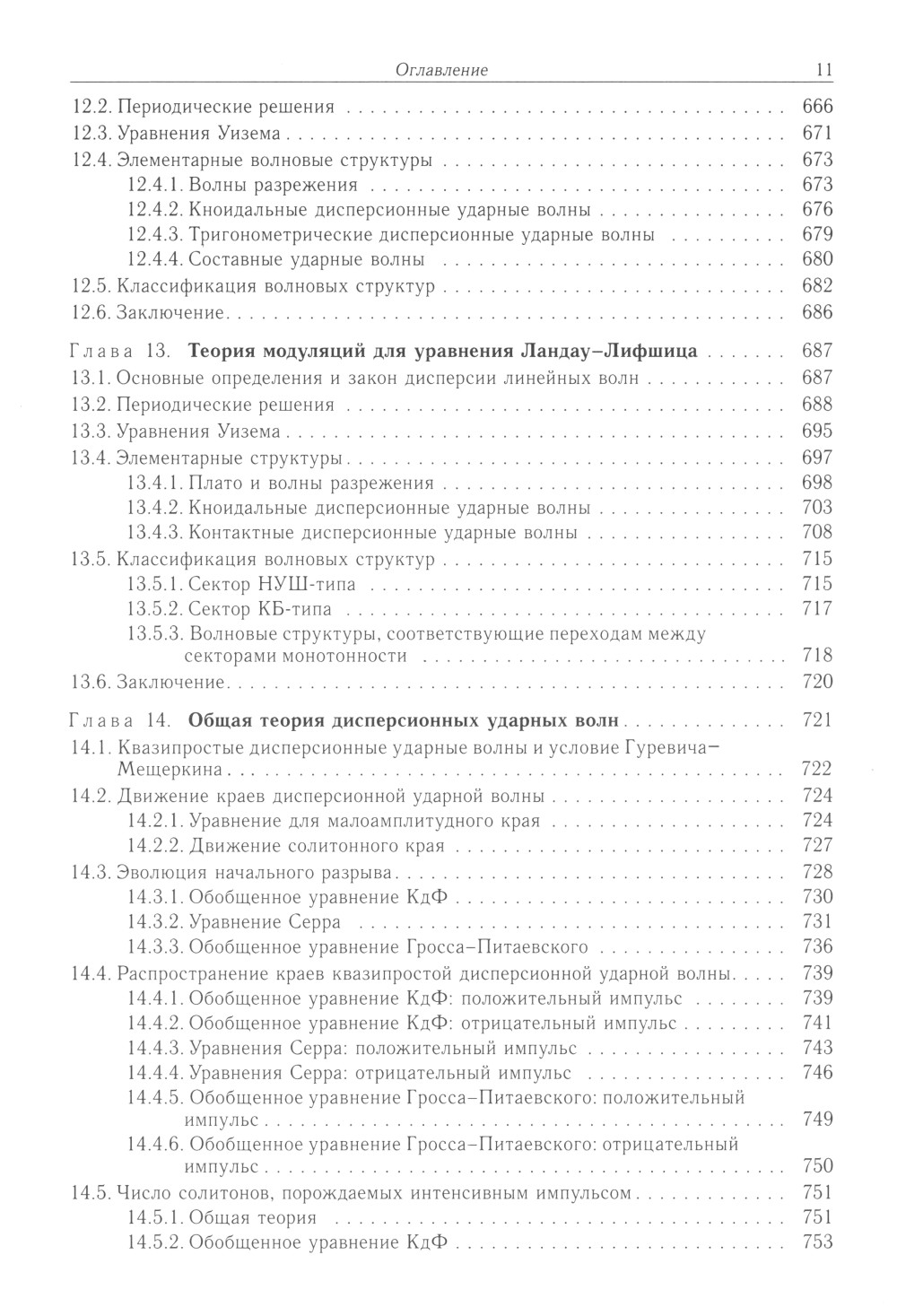 В монографии излагаются как основы теории нелинейных волн, так и её разделы, находящиеся на переднем крае науки. Особое внимание уделено теории дисперсионных ударных волн, мало отражённой в существующей монографической литературе. В частности, детально изложен подход Гуревича-Питаевского, основанный на модуляционной теории Уизема. Для освоения книги достаточно знания стандартных курсов физики и математики, преподаваемых в технических университетах. Используемый математический аппарат ориентирован на приложения теории к типичным физическим задачам. Книга предназначена как для специалистов, работающих в области теории нелинейных волн, так и для студентов и аспирантов, изучающих эту область науки.| Издательство | ИД Высшей школы экономики |