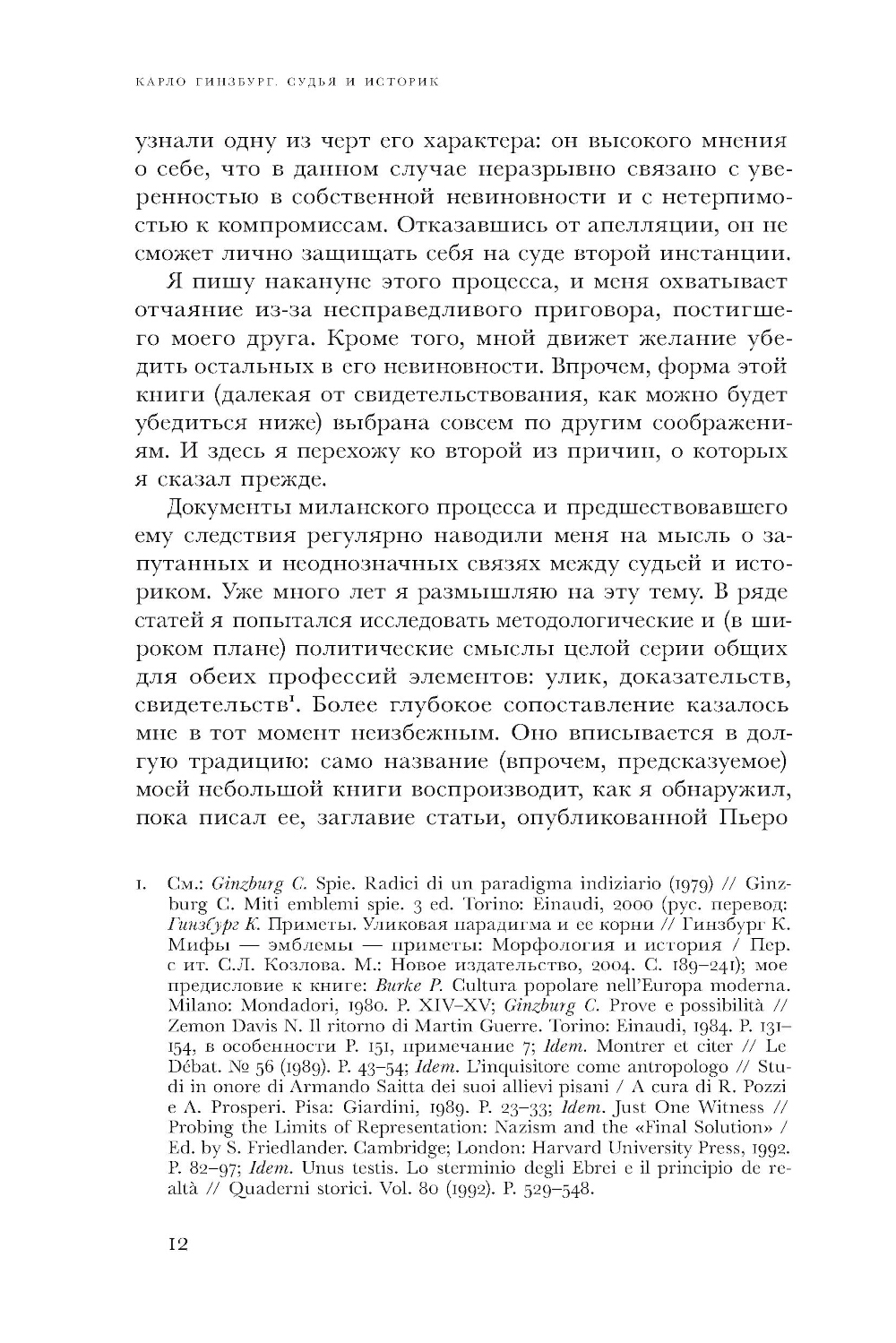 «Судья и историк» - уникальное детективное расследование итальянского историка Карло Гинзбурга, посвященное знаменитому процессу Адриано Софри. Экс-лидер леворадикальной организации «Непрерывная борьба» («Lotta continua») Софри был арестован в 1988 году, обвинен и осужден по делу об убийстве в 1972 году комиссара полиции Луиджи Калабрези. Гинзбург анализирует судебные материалы, дабы определить, удалось ли следствию доказать вину Софри. Как опыт и навыки профессионального историка помогают Гинзбургу разобраться в существе юридического казуса? В чем состоят сходства и различия между историком и судьей? Способна ли гуманитарная наука в современном цифровом мире выполнять важные общественные функции? На эти и другие остросоциальные вопросы отвечает автор в своей знаковой работе. Карло Гинзбург (р. 1939) - один из создателей «микроисторического» метода, автор многих книг и статей, посвященных интеллектуальной истории эпохи Возрождения, Нового и Новейшего времени.| Издательство | Новое литературное обозрение |