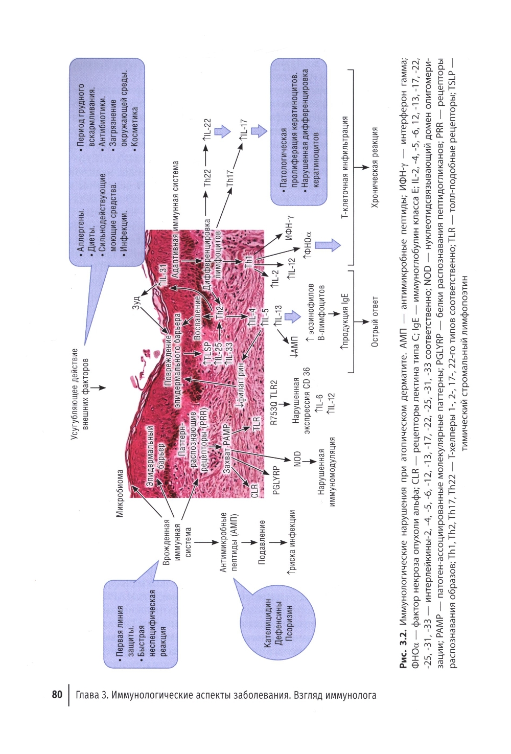 Руководство посвящено атопическому дерматиту - достаточно распространенному заболеванию среди детей и взрослых, серьезно влияющему на качество жизни пациентов. В работе над изданием приняли участие ведущие специалисты в области иммунологии, дерматологии, аллергологии, микробиологии и психологии. Коллектив авторов собрал и проанализировал результаты последних научных исследований, посвященных данной патологии. Каждый из экспертов представил свой взгляд на проблему, описывая атопический дерматит как мультифакториальное заболевание. В книге подняты вопросы эпигенетики, барьерной функции физиологических барьеров, роли иммунной системы в развитии местного воспалительного процесса, участия в патологическом процессе микробиоты и условно-патогенной флоры, места аллергии в прогрессирующем течении атопического дерматита и влияния психоэмоционального перенапряжения на тяжесть проявления болезни. Представлены клинические рекомендации ведения пациентов, начиная от рождения и заканчивая пожилым возрастом. Отдельная глава посвящена дерматологическим симптомам беременности, родов и послеродового периода. Руководство предназначено педиатрам, врачам семейной практики, дерматологам, аллергологам и психологам.