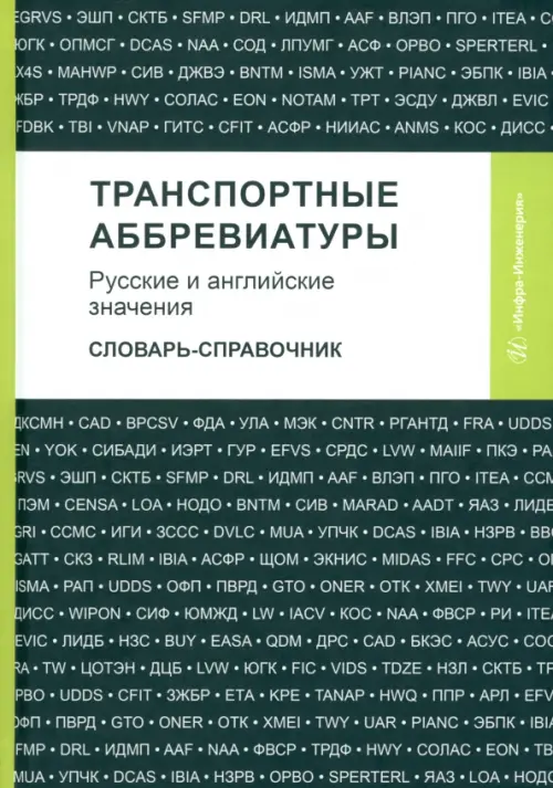 Специальный словарь транспортных аббревиатур - русских (около 4,9 тыс. ед.) и английских (более 5,0 тыс. ед.) - охватывает все виды транспорта (автомобильный, воздушный, водный (включая морской и речной), железнодорожный, трубопроводный) во всех аспектах их создания и функционирования: изыскания, проектирование, эксплуатация, развитие, а также смежные вопросы: экономика, информационное обеспечение, взаимодействие видов транспорта и т. д. Материал словаря может быть полезен широкому кругу специалистов магистральных видов транспорта в качестве справочника и как методическое пособие при формировании новых аббревиатур в текстах соответствующей тематики.