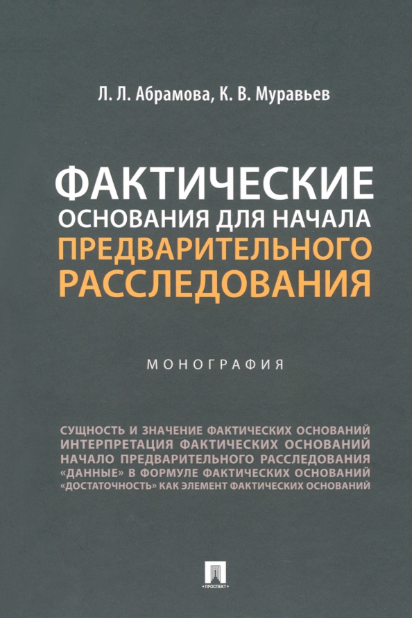 Аннотация: Фактические основания для начала предварительного расследования. Монография
