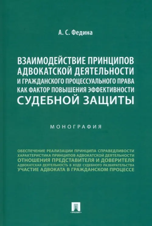 Взаимодействие принципов адвокатской деятельности и гражданского процессуального права как фактор повышения эффективности судебной защиты. Монография.