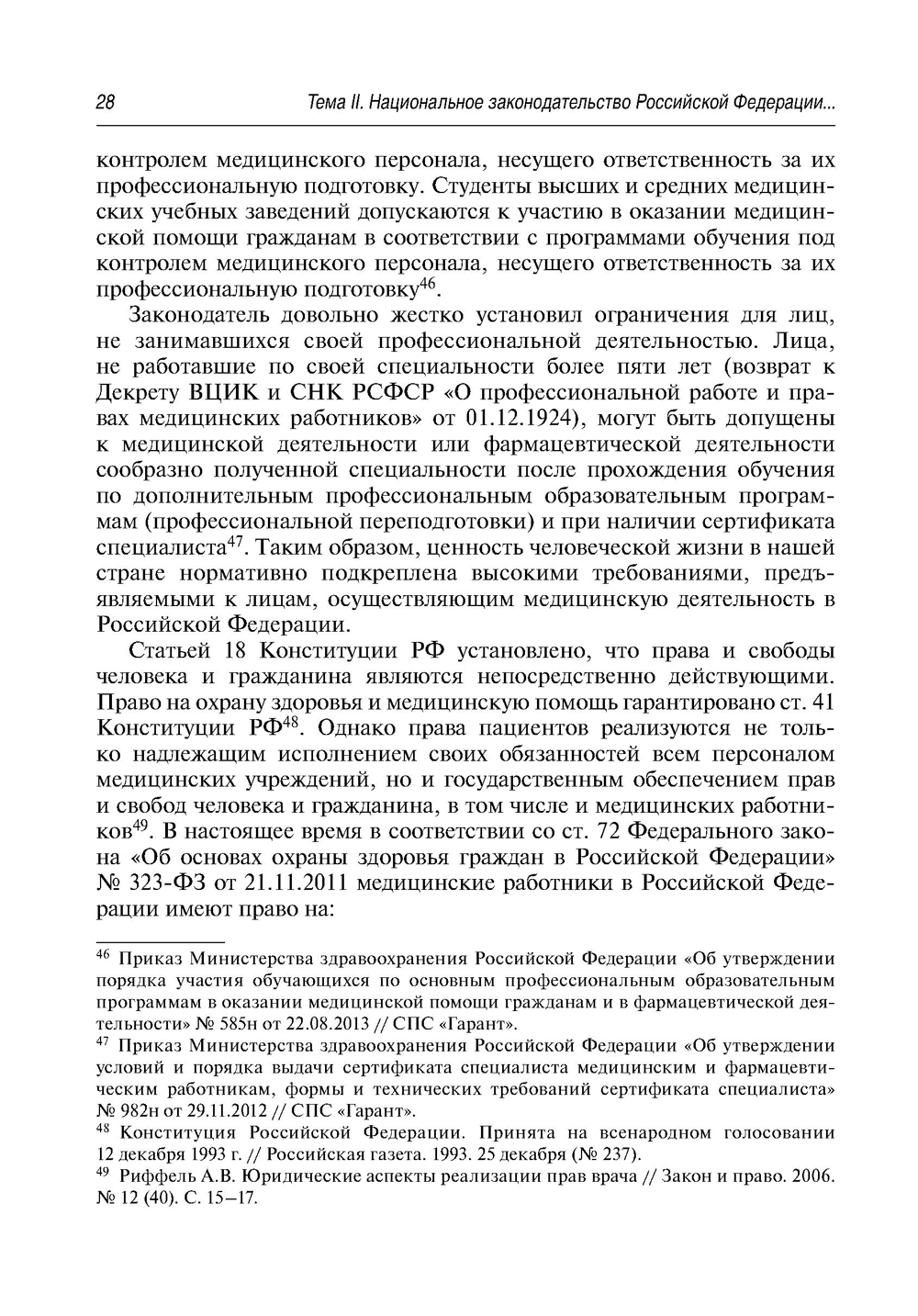 Аннотация: Современные проблемы законодательного регулирования медицинской деятельности в РФ
