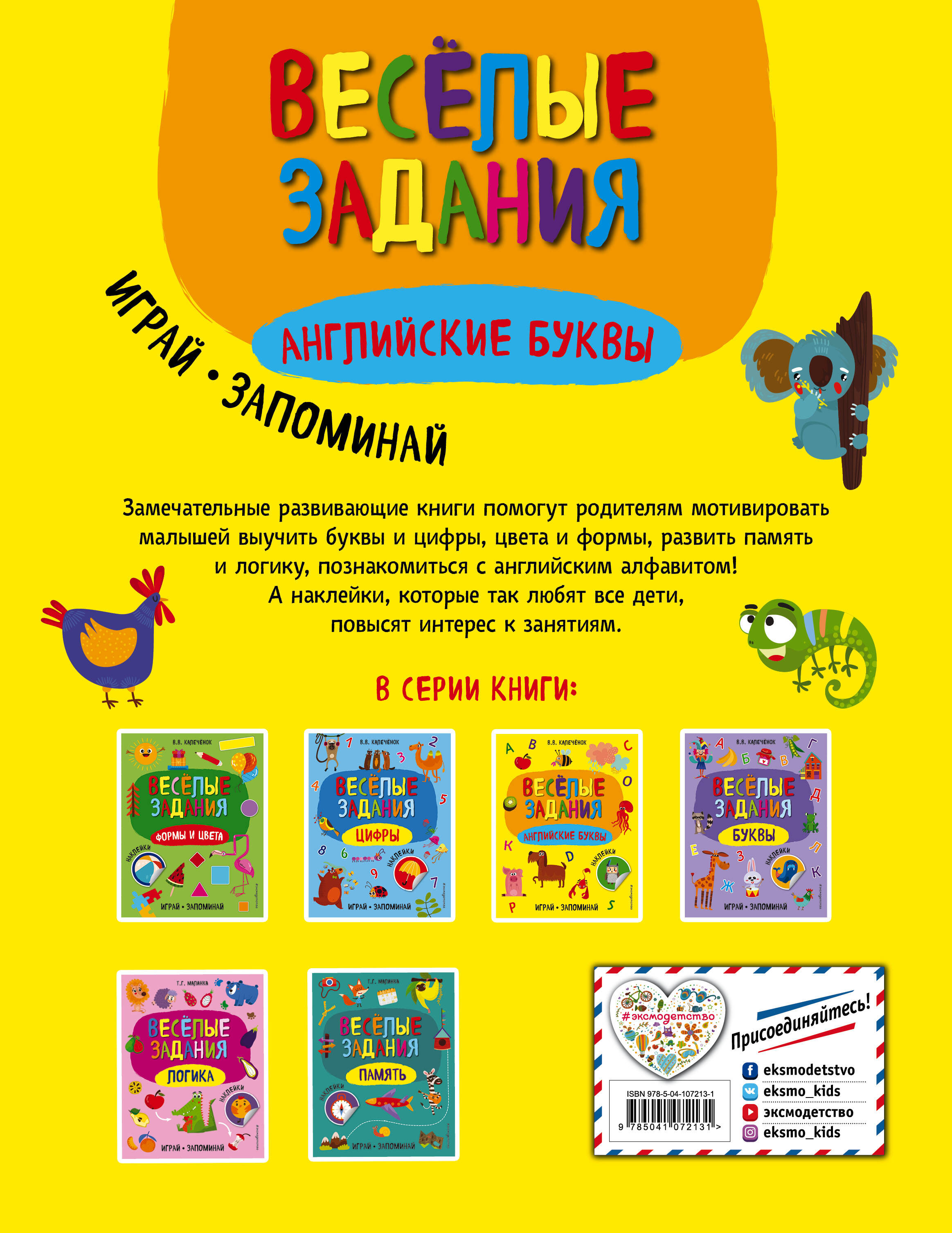 Цель - познакомить ребёнка с буквами английского алфавита. Выполняя упражнения, малыш будет активно работать с визуальным образом каждой буквы, превращая её в забавный рисунок. При таком подходе одновременно задействована зрительная и моторная память, что значительно ускорит процесс зрительного запоминания. Покупая своему ребёнку книгу с крупными милыми картинками, обучающими и мотивирующими наклейками, вы поможете ему: 1) познакомиться с английскими буквами; 2) научиться соотносить букву с названием предмета; 3) развить внимание, память, мелкую моторику; 4) подготовить руку к письму; 5) интересно и с пользой провести время.| Издательство | ООО "Издательство "Эксмо" |