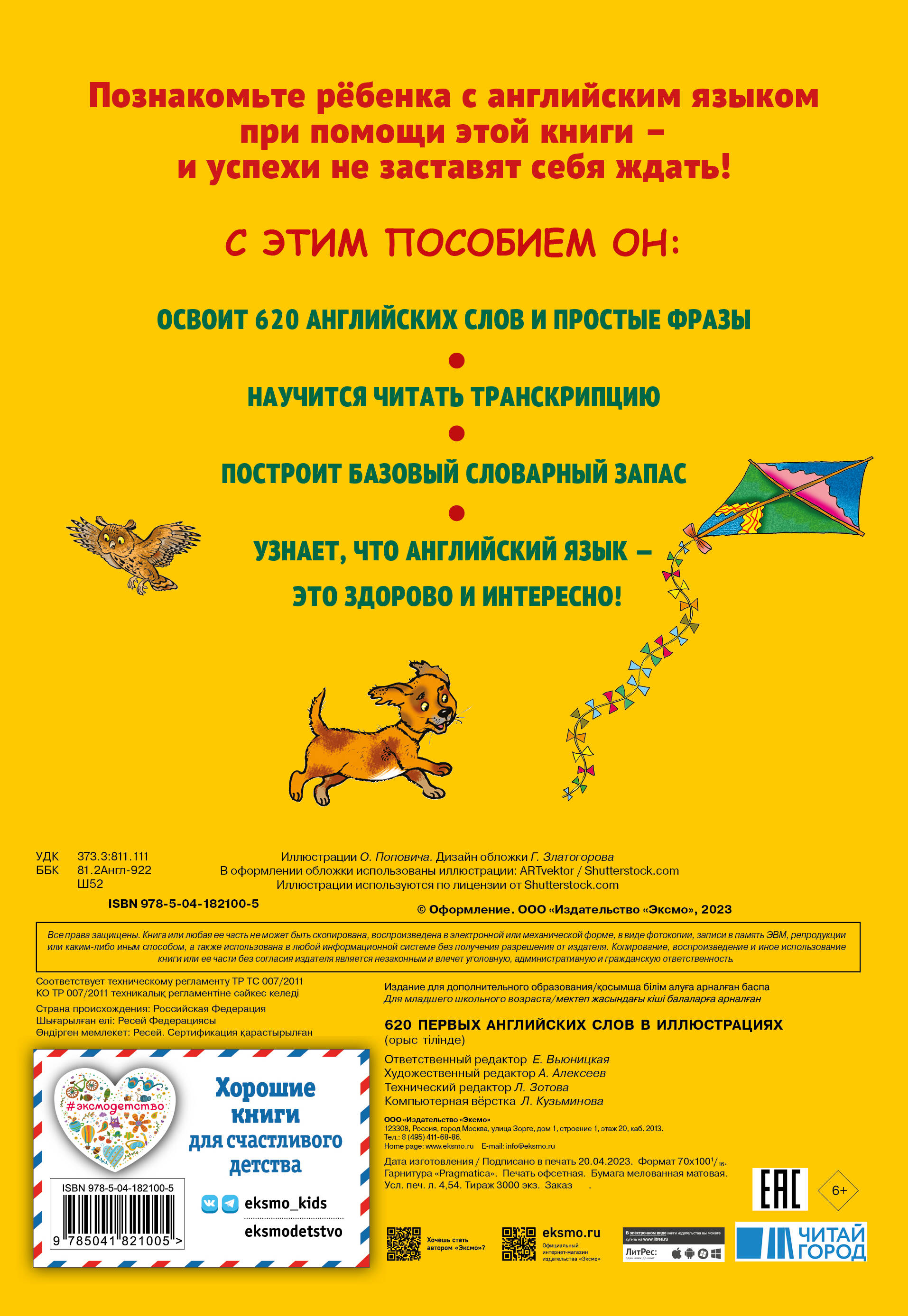С чего начать, чтобы привить ребенку интерес к английскому языку? Уж конечно, не с грамматики! Начните со знакомства с английскими словами! С помощью этой книги ученик запомнит более 600 английских слов по 35 темам, которые облегчат изучение языка в школе. Рассматривая красочные иллюстрации, ребенок вслед за вами начнет называть их по-английски. Произношение передано английской транскрипцией, а в начале книги приводятся правила ее чтения. Заглядывая в них, вы вместе с ребенком освоите правила чтения транскрипции, что очень пригодится при дальнейшем изучении английского языка. Полезные слова, красочные иллюстрации, нескучные занятия и отличный результат!| Издательство | ООО "Издательство "Эксмо" |
