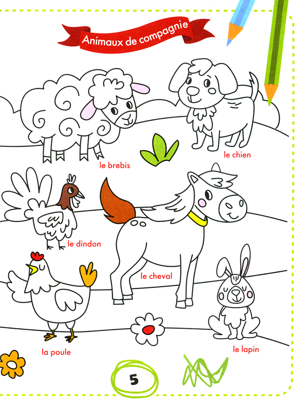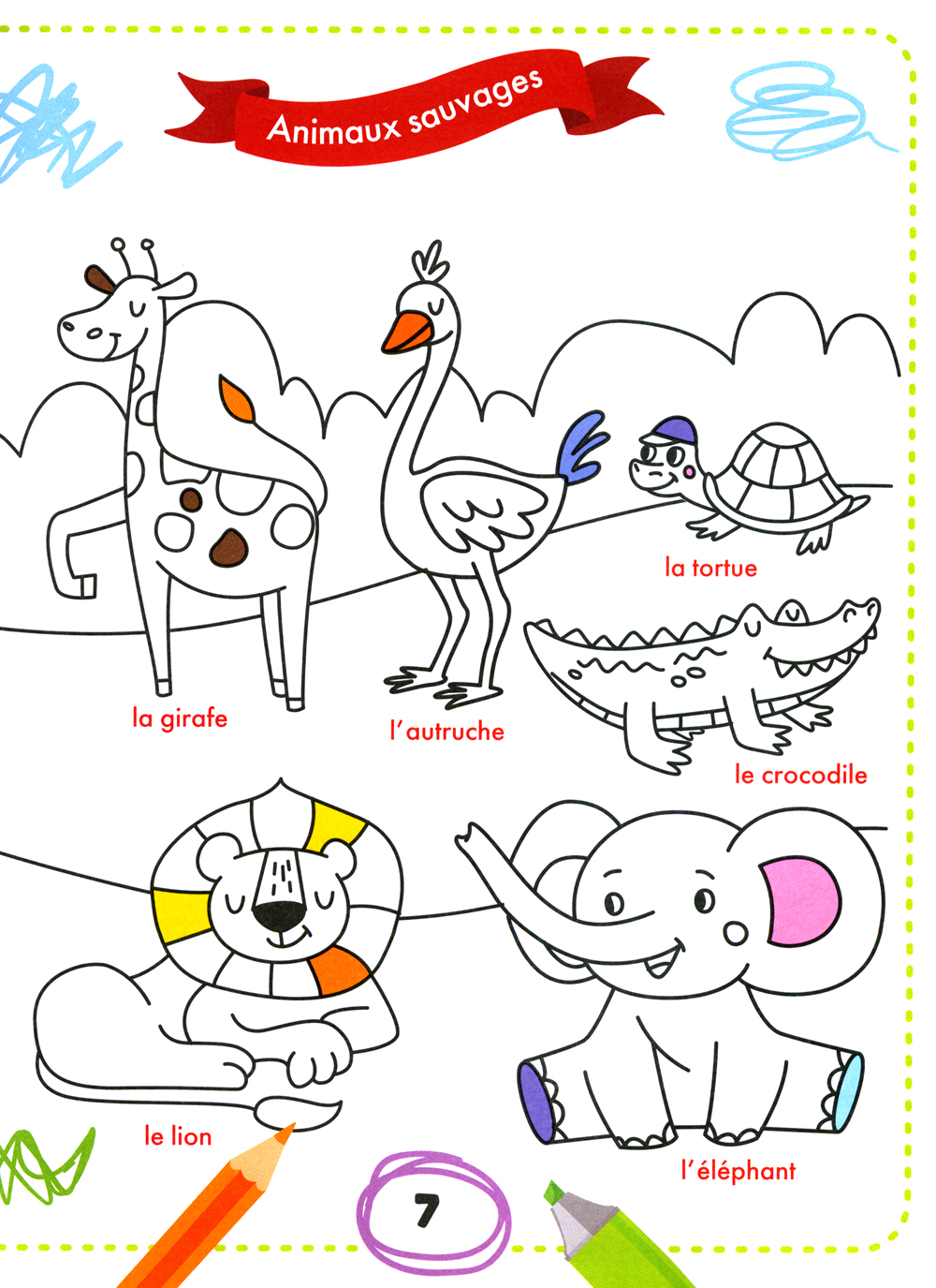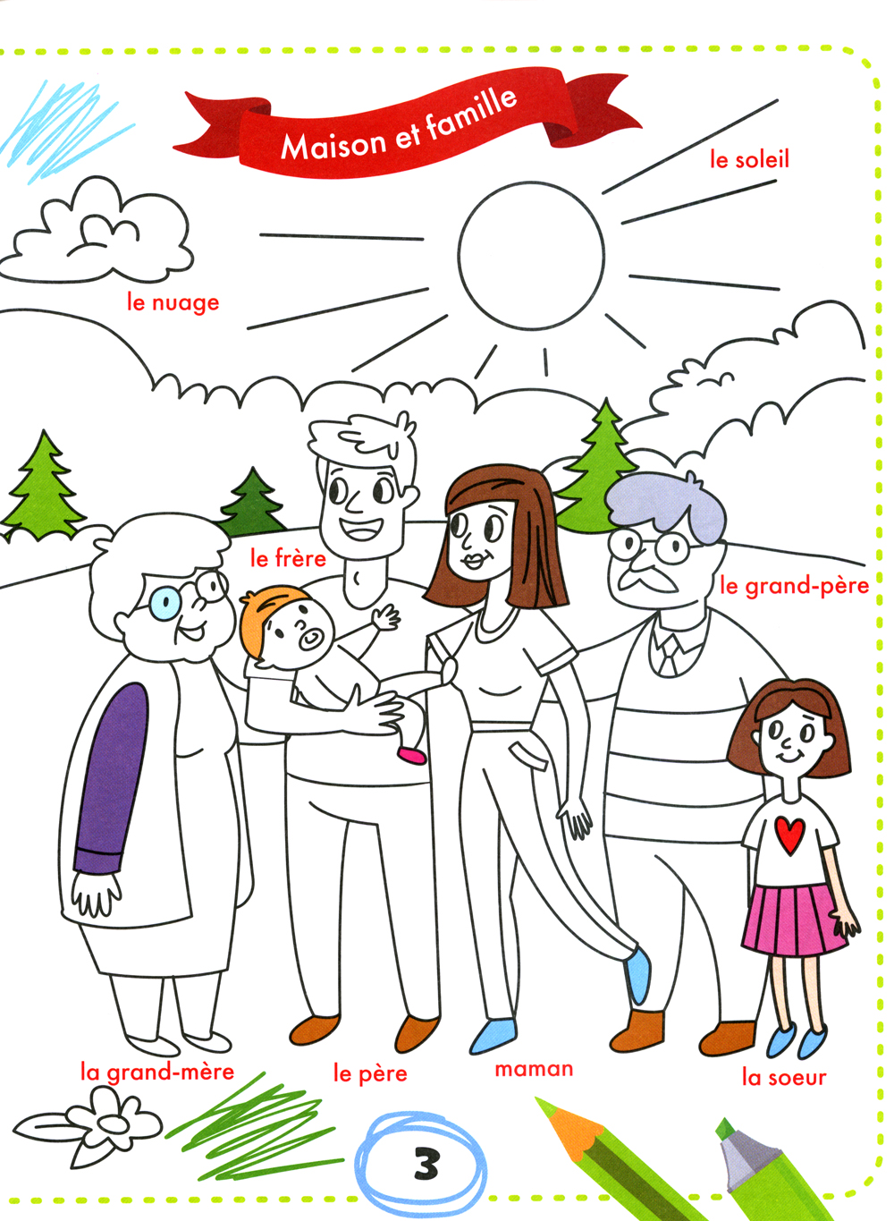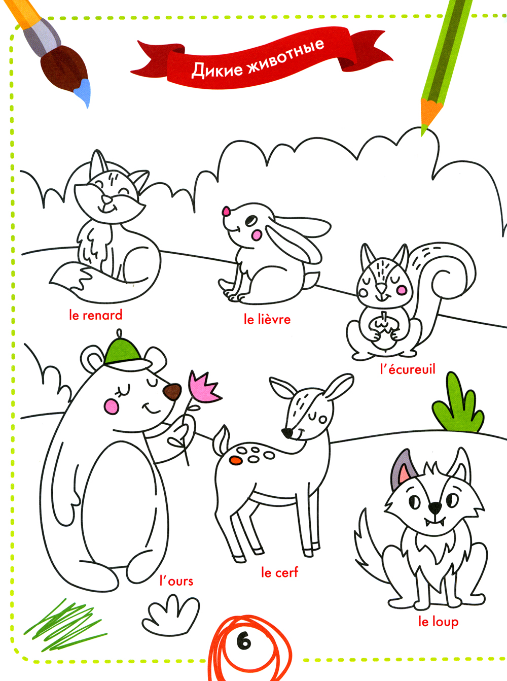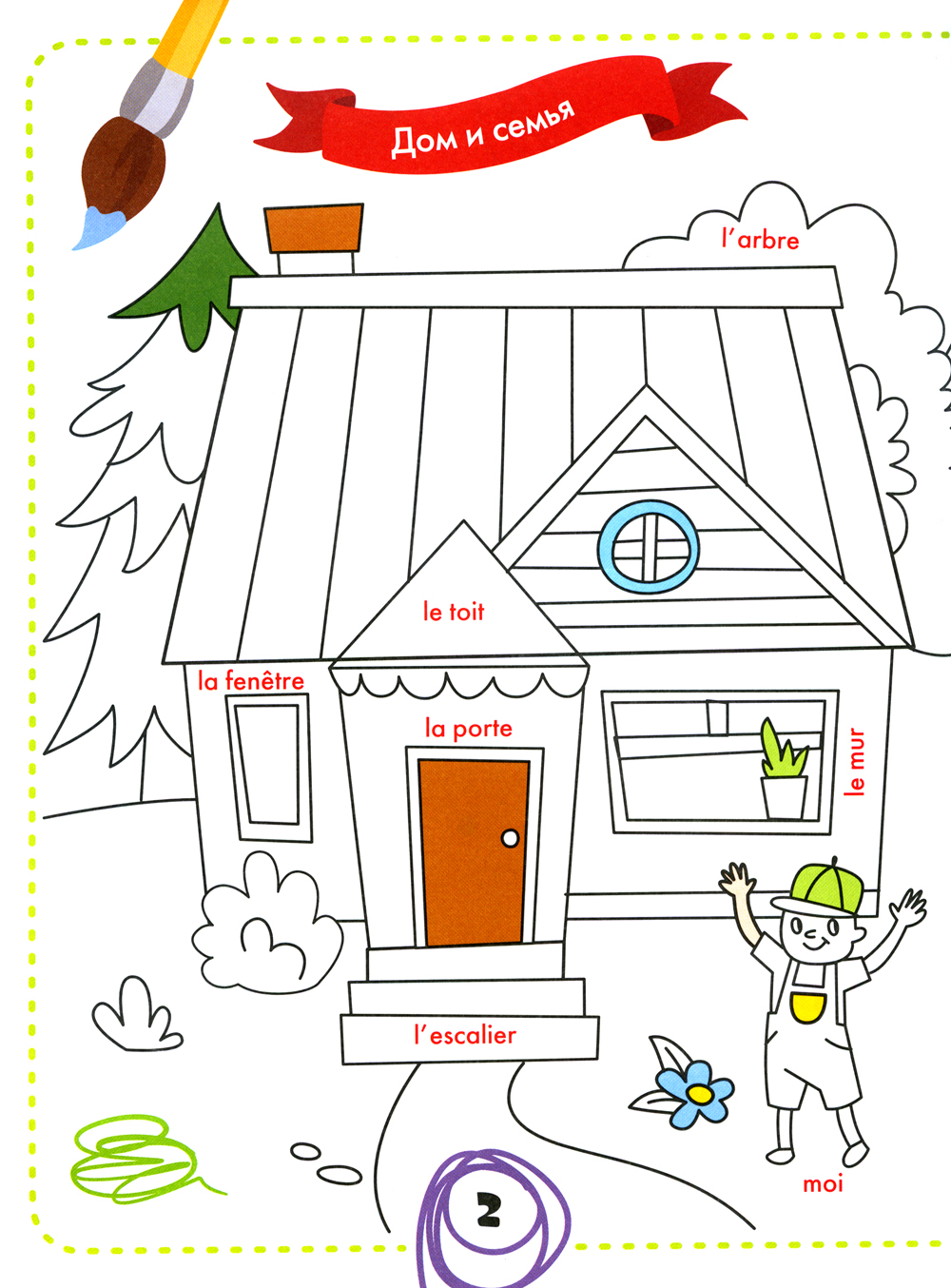 Весёлая раскраска позволит ребёнку с пользой провести время, в игровой форме развивая у него внимание, и поможет выучить 100 слов на французском языке.
