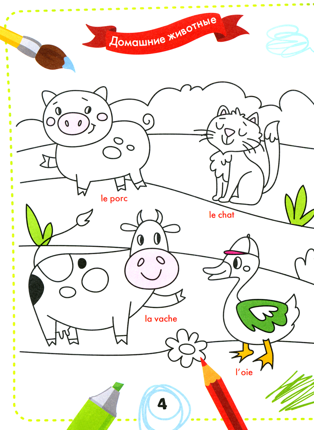 Раскрась и выучи слова. Французский для малышей