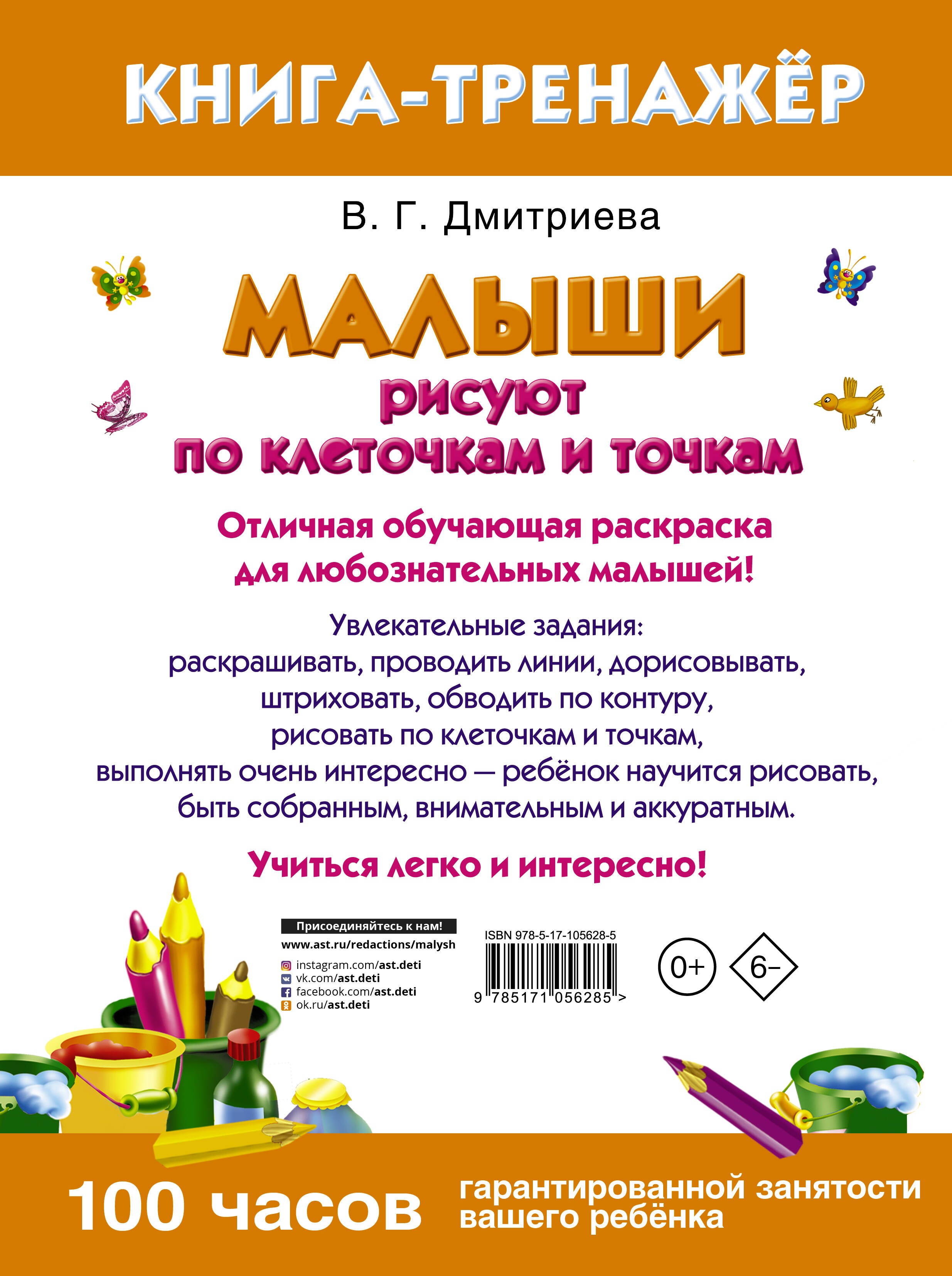 Прописи «Малыши рисуют по клеточкам и точкам» В.Г. Дмитриевой созданы по оригинальной методике развития мелкой моторики - приёмы и занимательные задания помогут развить графические навыки и творческие способности дошкольника. Выполняя задания, ребёнок без особых усилий подготовит руку к письму. А разнообразие предложенных упражнений поможет поддержать интерес к занятиям.