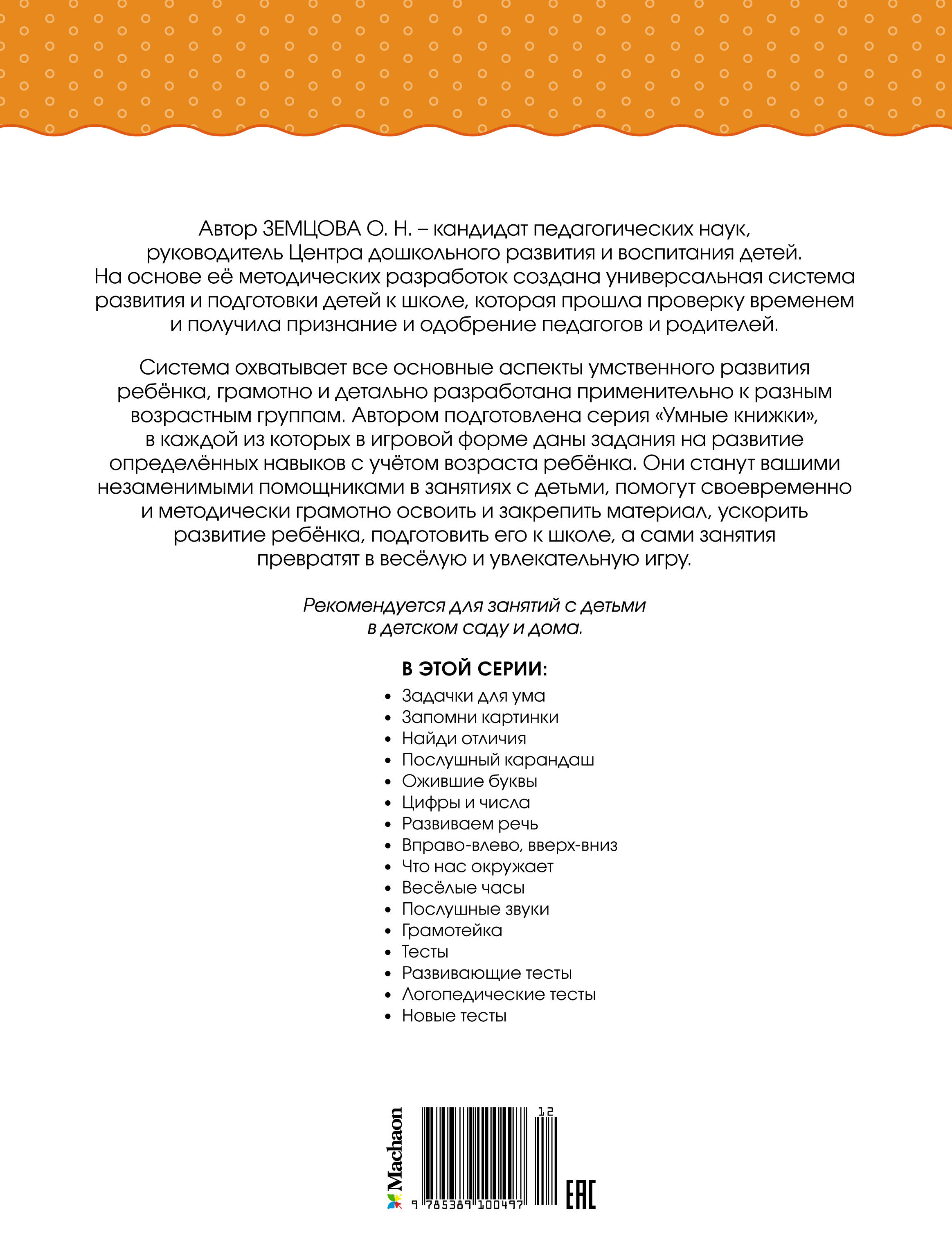 Система охватывает все основные аспекты умственного развития ребёнка, грамотно и детально разработана применительно к разным возрастным группам. Автором подготовлена серия "Умные книжки", в каждой из которых в игровой форме даны задания на развитие определённых навыков с учётом возраста ребёнка. Они станут вашими незаменимыми помощниками в занятиях с детьми, помогут своевременно и методически грамотно освоить и закрепить материал, ускорить развитие ребёнка, подготовить его к школе, а сами занятия превратят в весёлую и увлекательную игру. Детям до 3-х лет.