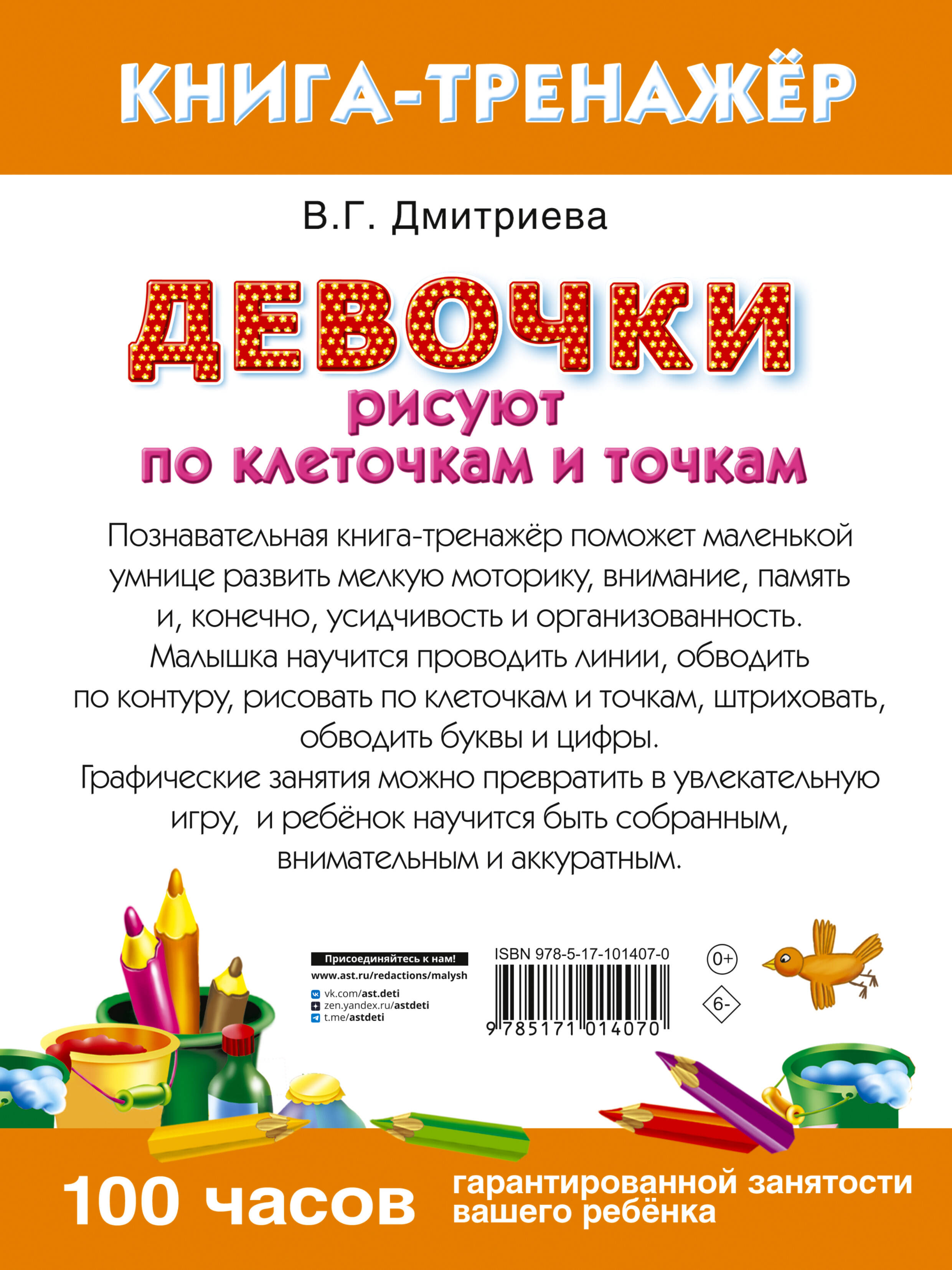 Обучающее издание для будущих отличников - это сборник игровых заданий и одновременно развивающая раскраска. Это книга интеллектуальных игр, лабиринтов, картинок по клеточкам и точкам для дошколят. - Увлекательные задания сделают процесс занятий интересным. - Страничка за страничкой маленькая ученица отработает навыки, необходимые для подготовки к школе: научится уверенно держать карандаш, выполнять графические задания разной степени сложности. - Обводя и дорисовывая картинки, ваша дочка научится усидчивости и аккуратности. - Хотите видеть своего ребенка успешным, грамотным, прилежным учеником - занимайтесь по этой развивающей книжке.| Издательство | ИЗДАТЕЛЬСТВО "АСТ" |