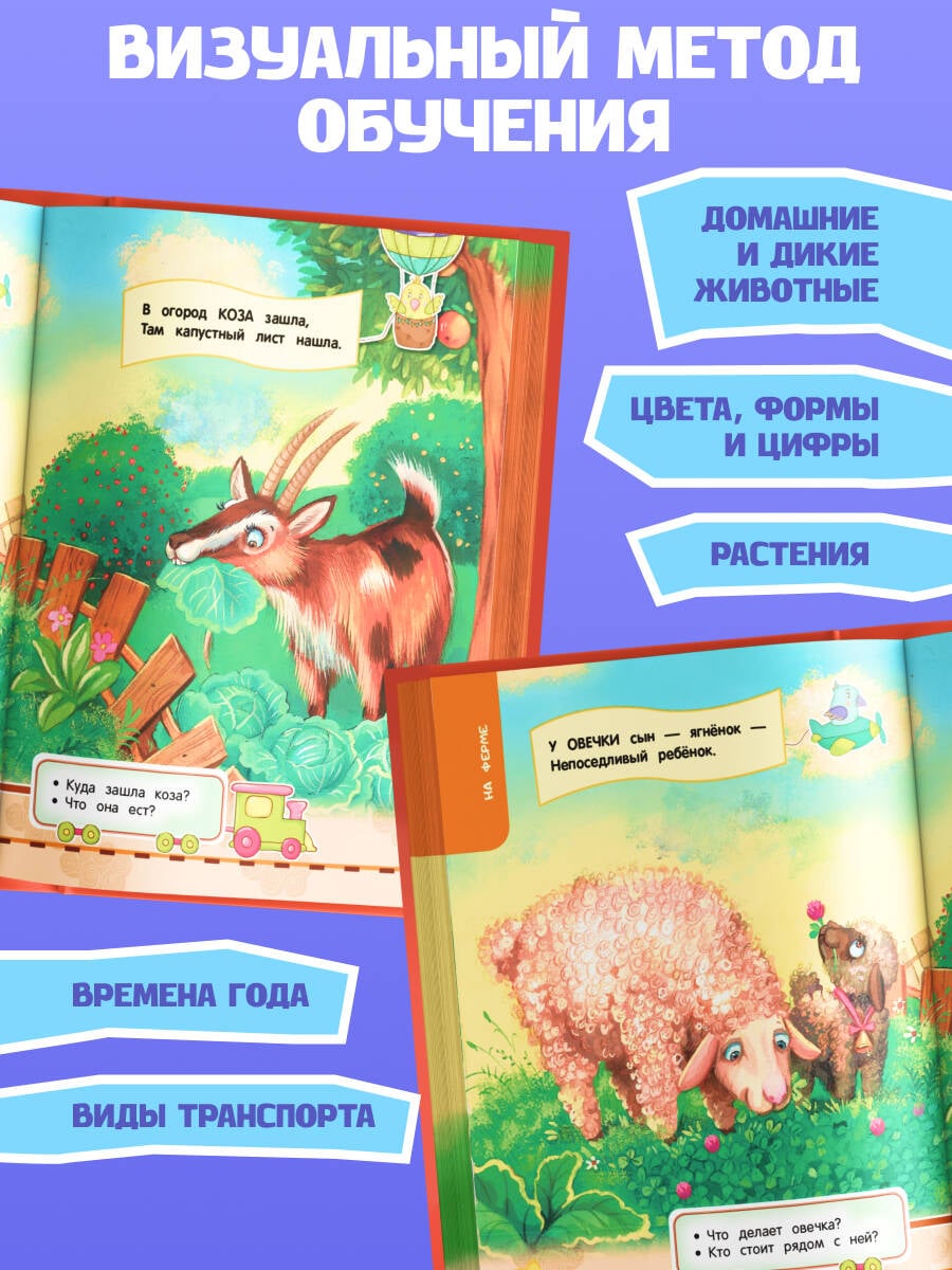 Ученые считают, что самый эффективный способ обучения малыша в первые годы жизни - визуальный. Именно наглядные иллюстрации и общение с родителями дают наилучший результат. Эта книга для такого метода обучения. Она поможет малышу ближе познакомиться с окружающим миром, превратив это знакомство в интересную познавательную игру. Она станет важным элементом интеллектуального и эмоционального развития ребенка. Перелистывая страницы книги, он узнает много нового и интересного о домашних и диких животных, растениях, временах года и видах транспорта, научится узнавать и называть цвета, формы и цифры, сможет потренировать внимание и зрительное восприятие, развить память, мышление, воображение, расширить кругозор и словарный запас. Книга будет отличным подарком и принесет много положительных эмоций любознательным непоседам.| Издательство | ООО "Издательство "Эксмо" |