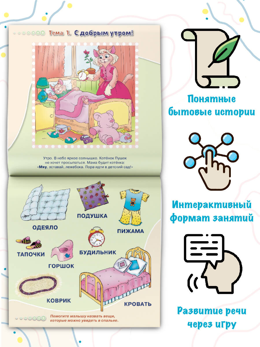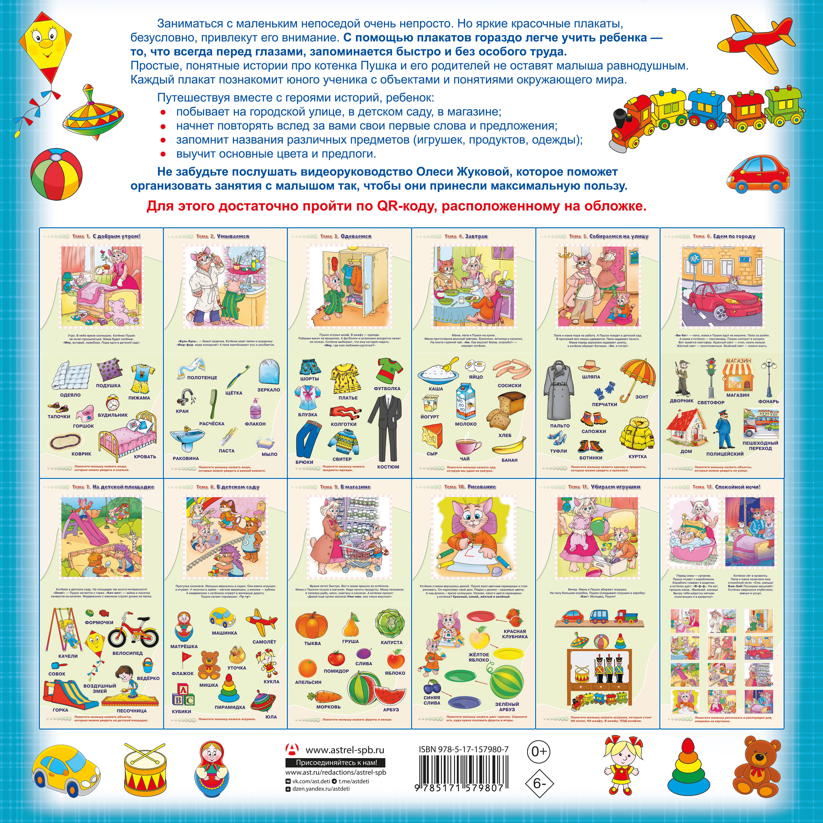 Брошюра представляет собой набор обучающих плакатов для развития речи у детей от 1 года до 3 лет. Заниматься с маленьким ребенком очень непросто, но эти плакаты, безусловно, привлекут его внимание. Простые, понятные истории про котенка Пушка не оставят равнодушным юного непоседу. Рассматривая яркие рисунки, малыш быстро начнет повторять вслед за вами свои первые слова и предложения. Для дошкольного возраста.| Издательство | ИЗДАТЕЛЬСТВО "АСТ" |