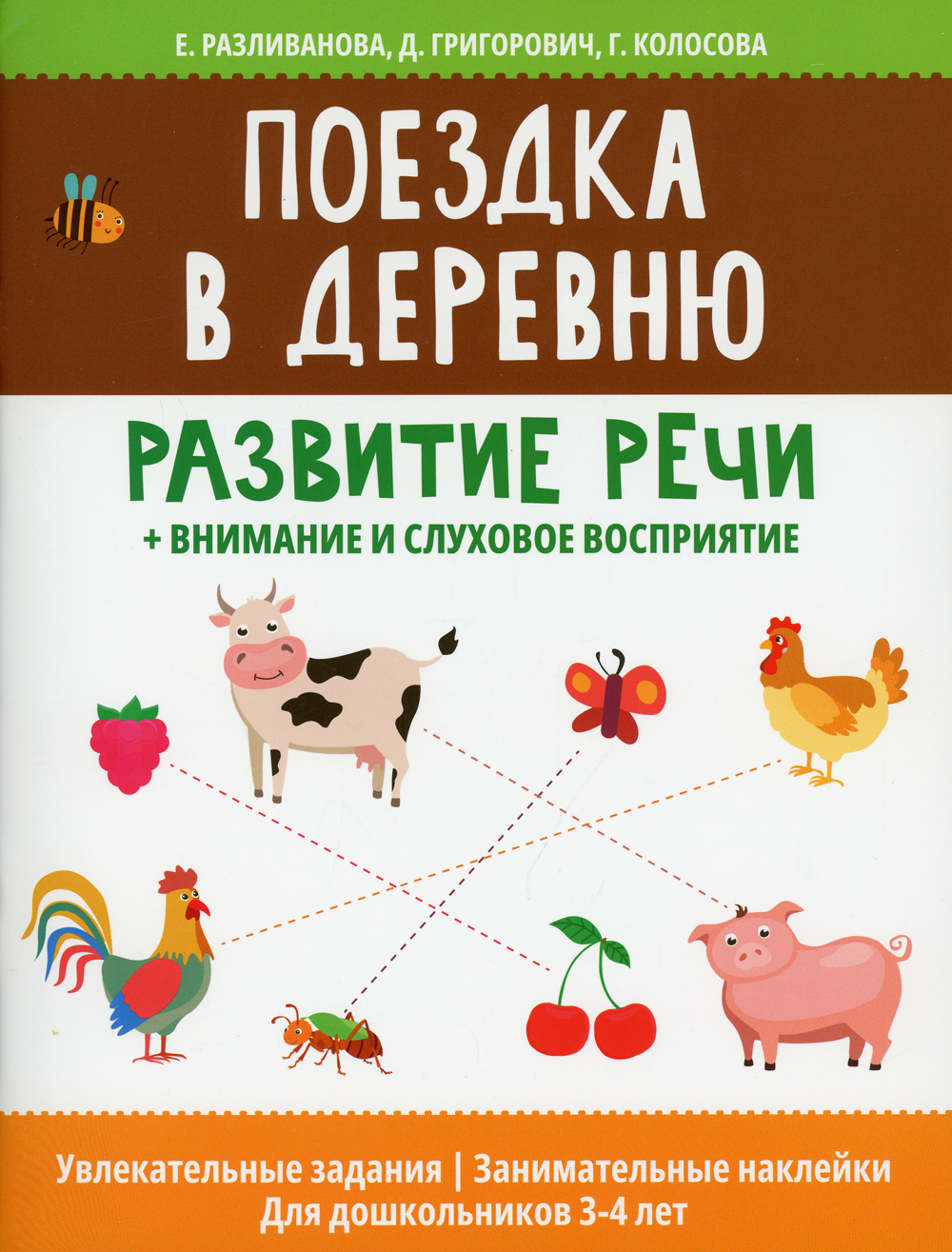 Рабочая тетрадь-тренажёр с наклейками направлена на развитие речи, внимания и слухового восприятия у младших дошкольников 3-4 лет. Материал в пособии разнообразен и способен удерживать внимание ребёнка в течение продолжительного времени. Увлекательные задания перенесут ребёнка в мир деревенской жизни: познакомят с домашними животными и птицами, научат обобщать и сравнивать фрукты, овощи, ягоды, отличать садовый инвентарь от других инструментов и т.д. Занимательные наклейки, развивая зрительное внимание, мышление и моторику, доставят ребёнку радость и удовольствие от обучения и игры.| Издательство | Феникс |