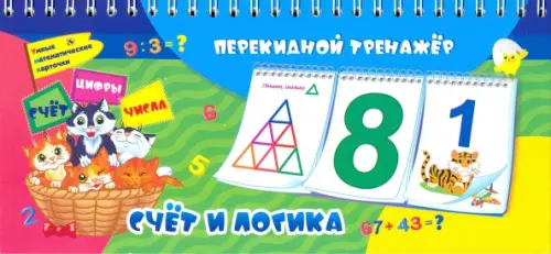 Математический перекидной тренажёр. Счет и логика. Умные математические карточки. Счет. Цифры. Числа. 3 блока по 12 карточек