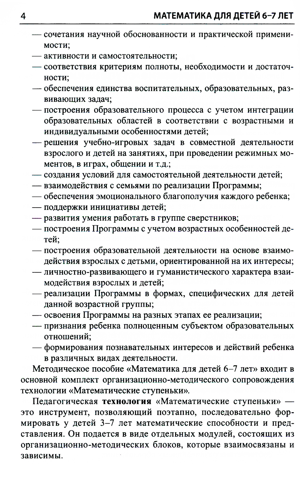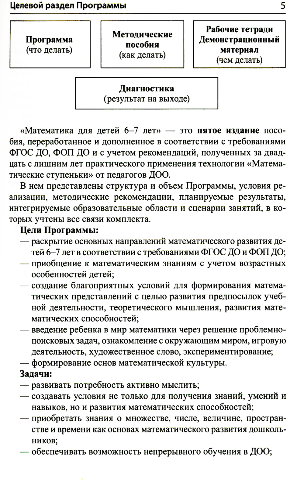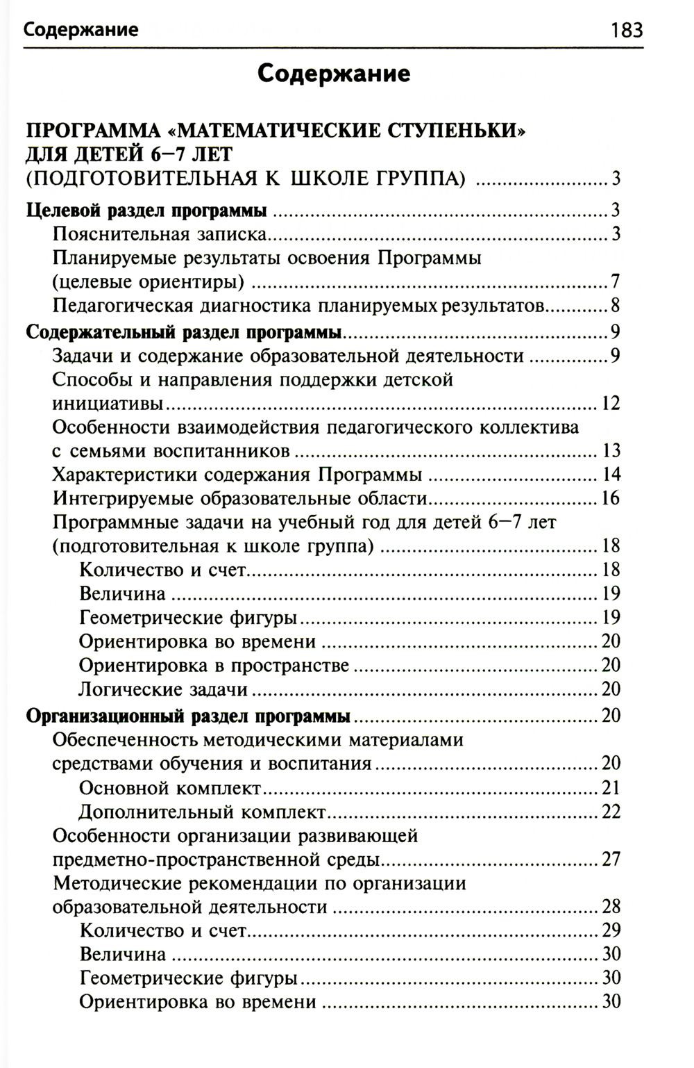 В организационно-методическое сопровождение программы «Математические ступеньки» для детей 6-7 лет входят: 1) данное методическое пособие, 2) рабочая тетрадь «Я считаю до двадцати», 3) демонстрационный материал, 4) книги дополнительного комплекта. В методическом пособии представлены программа курса, методические рекомендации, планируемые результаты, интегрируемые образовательные области и сценарии занятий, в которых учтены все связи комплекта. Это пятое издание пособия, переработанное и дополненное в соответствии с Федеральным государственным стандартом дошкольного образования (ФГОС ДО) и Федеральной образовательной программой дошкольного образования (ФОП ДО). Предназначено всем участникам образовательного процесса - детям, педагогам, родителям.| Издательство | Творческий центр Сфера |