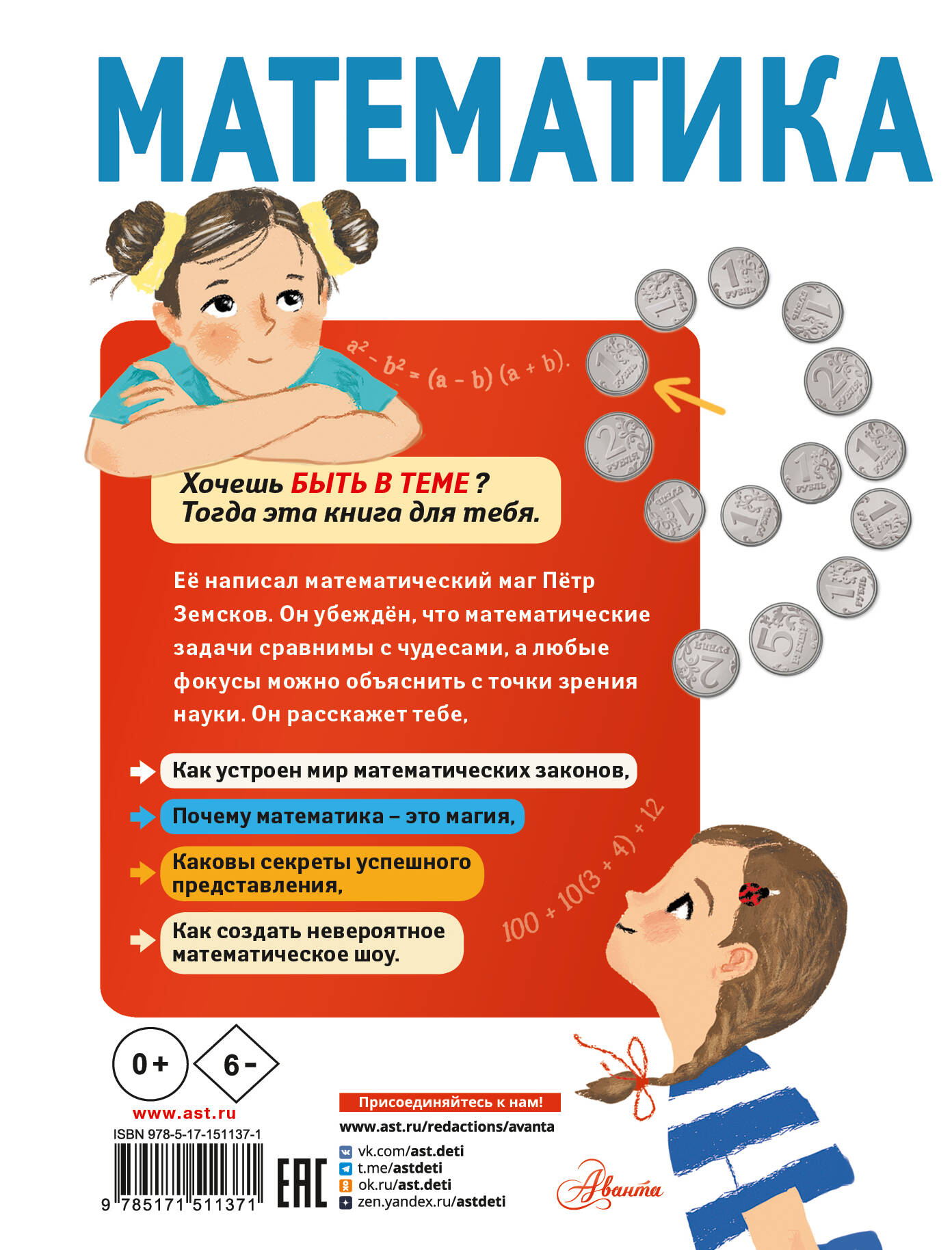 Эта книга о том, как овладеть математической магией и учиться в школе с удовольствием. Популярный блогер и учитель Пётр Земсков научит вас техникам быстрого счёта, поможет разобраться в свойствах чисел и расскажет, как угадывать сумму, не зная слагаемых.