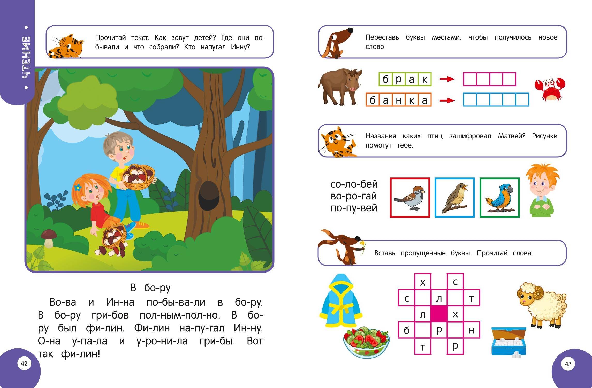 Книга заменит множество развивающих пособий для детей 6-7 лет. Выполняя интересные, доступные игровые задания вместе с мамой и тратя на это 25-30 минут в день, ребёнок будет решать простейшие примеры и задачи на сложение и вычитание, сможет самостоятельно прочесть слоги, слова, предложения и небольшие тексты, научится писать печатные буквы и цифры, выучит первые английские слова, сгруппированные по темам, разовьёт память, внимание, речь, мышление, воображение, подготовит руку к письму, углубит и расширит свои познания о теле человека. Книга будет отличным подарком детям, которые не любят долго сидеть за столом, и родителям, у которых мало свободного времени.