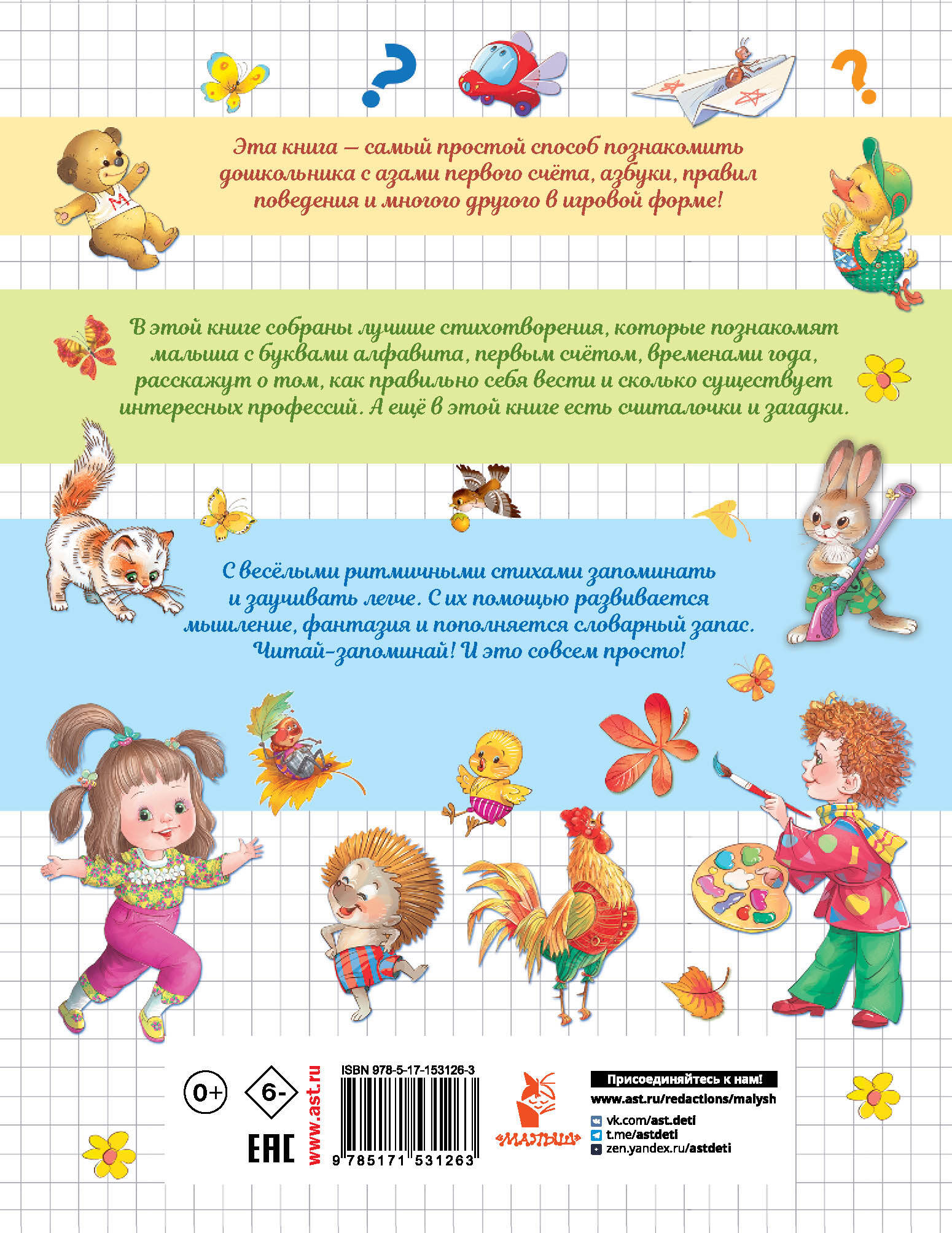 Эта книга - самый простой способ познакомить дошкольника с азами первого счёта, азбуки, правил поведения и многого другого в игровой форме! В этой книге собраны лучшие стихотворения, которые познакомят малыша с буквами алфавита, первым счётом, временами года, расскажут о том, как правильно себя вести и сколько существует интересных профессий. А ещё в этой книге есть считалочки и загадки. С весёлыми ритмичными стихами запоминатьи заучивать лeгче. С их помощью развивается мышление, фантазия и пополняется словарный запас. Читай-запоминай! И это совсем просто! 5 декабря 2022 года исполняется 100 лет со дня рождения Екатерины Каргановой.| Издательство | ИЗДАТЕЛЬСТВО "АСТ" |