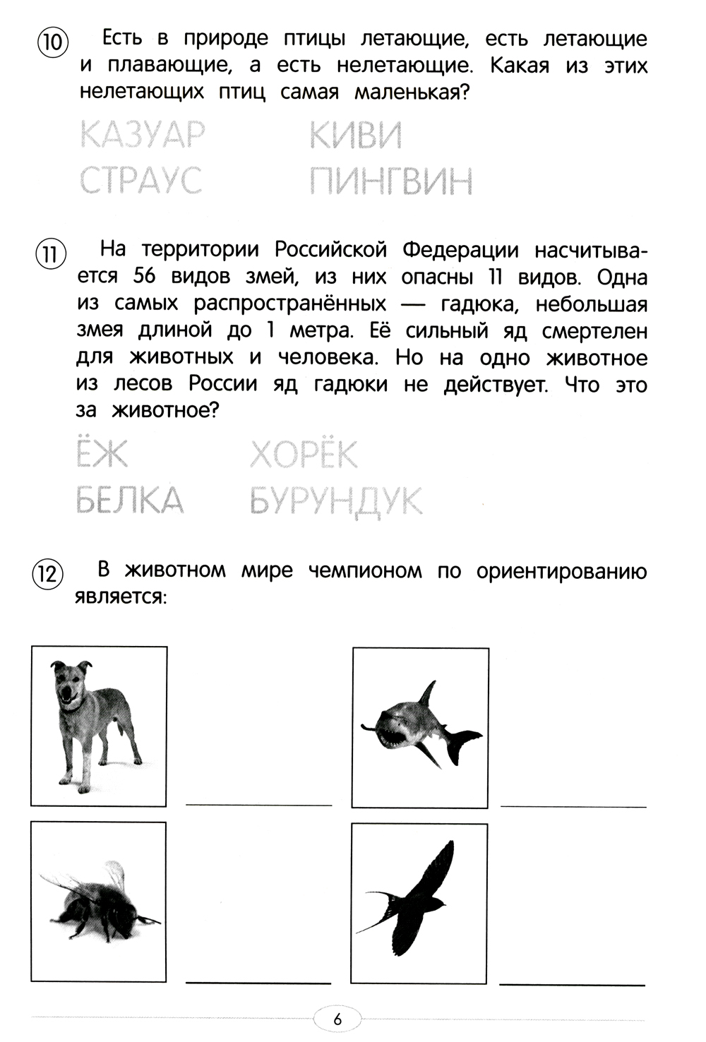Книги с обучающими тестами предназначены для комплексного развития многих практических навыков и умений у дошкольников и учеников начальной школы. Это развитие внимания и логического мышления, использование имеющихся и получение новых знаний, развитие мелкой моторики рук, а также расширение и обогащение языка ребёнка. Занимательные вопросы, новая для ребёнка информация, множество иллюстраций - всё это есть в книге "В мире животных". С одними заданиями ребёнок справится легко, над другими придётся подумать, а для выполнения некоторых, возможно, понадобится помощь взрослых. Автор надеется, что эта книга поможет ребёнку понять, что обучение не только тяжёлый труд, но и увлекательное, интересное путешествие в мир новых знаний
