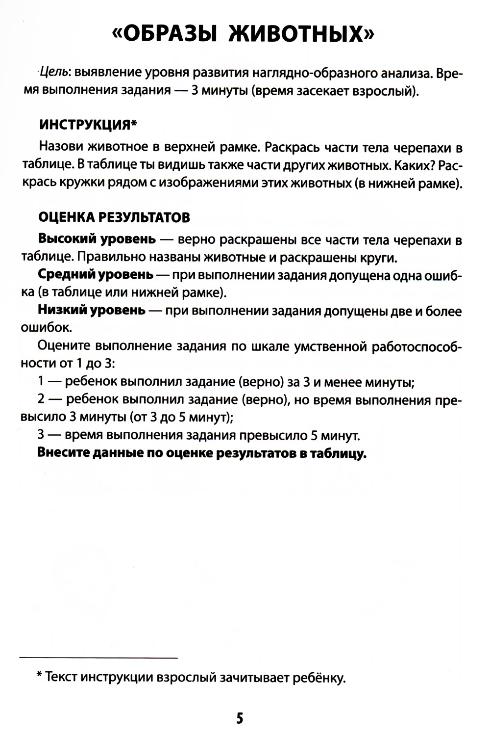В пособии представлен частичный мониторинг процесса мышления у детей 5-6 лет. Мониторинг включает в себя шесть модифицированных диагностических заданий на основе наглядно-графических методов. Предлагаемый диагностический материал позволит оценить такие операции мышления, как анализ, синтез, сравнение, обобщение, классификация, абстрагирование. Методическое пособие содержит полную пошаговую инструкцию для взрослого, в нем приведены примеры для раскрашивания и упражнений для работы с ребёнком. Оно будет полезно не только специалистам (в качестве вариативной части исследования), но и родителям - для домашней диагностики.| Издательство | Феникс |