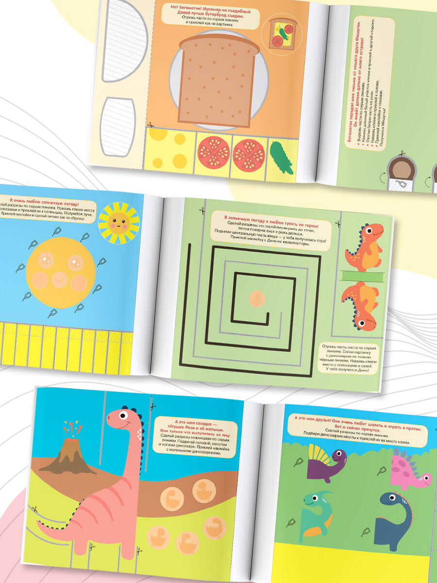 Интересные задания в книге подобраны так, что ребёнок, пошагово, от простого к сложному, учится правильно и безопасно пользоваться ножницами, точно и аккуратно наклеивать, ровно сгибать бумагу. Благодаря интересному сюжету и постепенному усложнению заданий, ребёнок, играя, освоит сложный навык работы с бумагой, ножницами и клеем и почувствует уверенность в своих силах. Для выполнения заданий в книге есть наклейки, которые так нравятся малышам.| Издательство | АСТ |