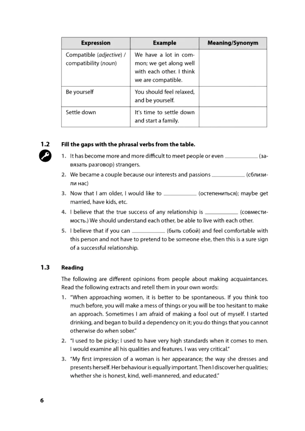 Пособие научит понимать живую современную английскую речь и общаться с носителями английского языка на равных. Автор книги за годы преподавания в России тщательно отобрал материал, необходимый для русских студентов на уровне Upper-Intermediate и выше. Для качественного повышения уровня необходимо знать и умело применять современные фразовые глаголы. Это важнейшая часть словарного запаса, лежащая в основе живой речи. Материал разделен по коммуникационным темам, отрабатывается на конкретных примерах и закрепляется в многочисленных и разнообразных упражнениях. В конце книги - дополнительные тесты и ключи для самопроверки. Книга поможет перейти от изучения английского языка к живому непосредственному общению, а также подготовиться к устной части иностранных экзаменов уровня B1 и выше. В первую очередь пригодится студентам языковых и разговорных курсов.| Издательство | Каро |