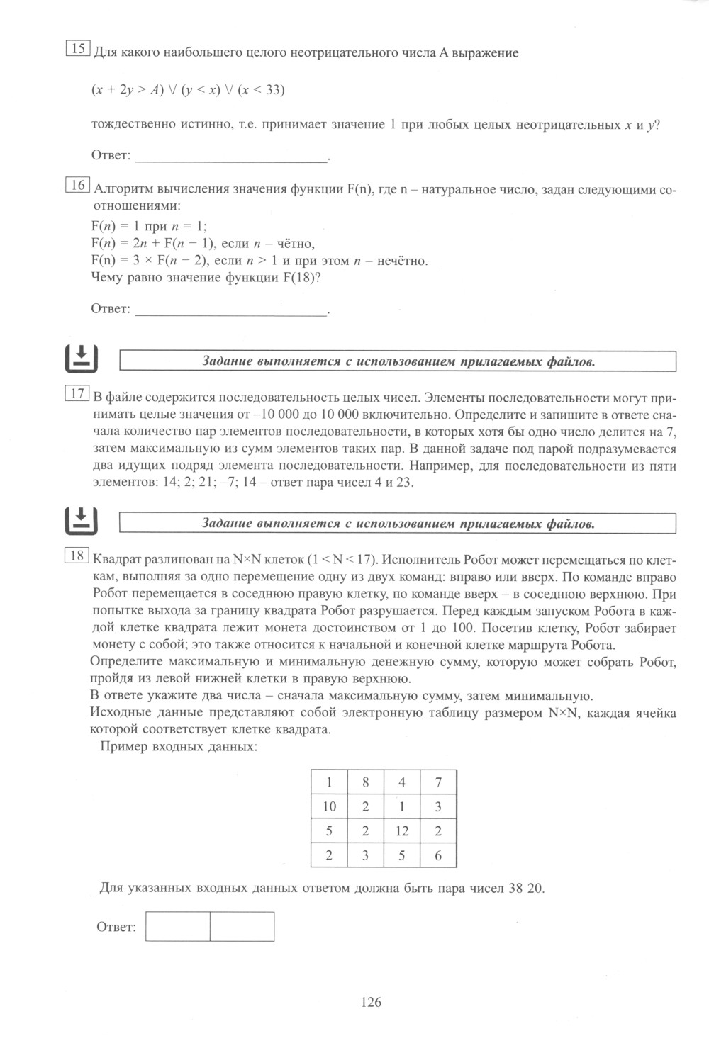 Данное пособие предназначено для подготовки учащихся 11 классов к Единому государственному экзамену (ЕГЭ) по информатике. Издание включает типовые задания по всем содержательным линиям экзаменационной работы, а также примерные варианты в формате ЕГЭ 2025 года. Пособие поможет школьникам проверить свои знания и умения по предмету, а учителям - оценить степень достижения требований образовательных стандартов отдельными учащимися и обеспечить их целенаправленную подготовку к экзамену.| Издательство | Интеллект-Центр |