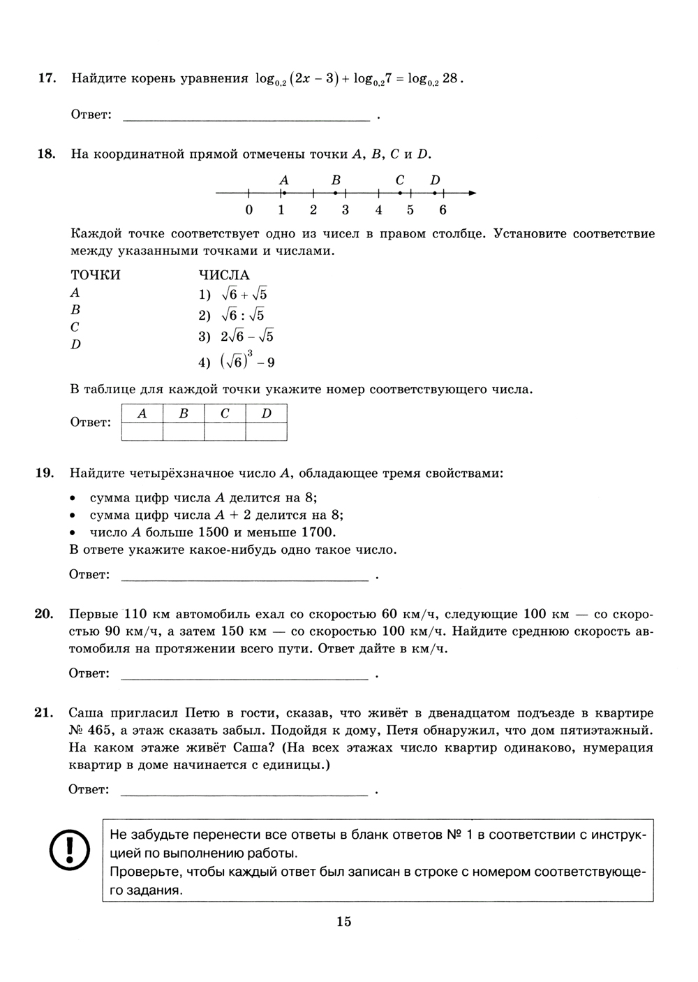 ЕГЭ 2024. Математика. Базовый уровень. 15 вариантов. Типовые варианты экзаменационных заданий от разработчиков ЕГЭ