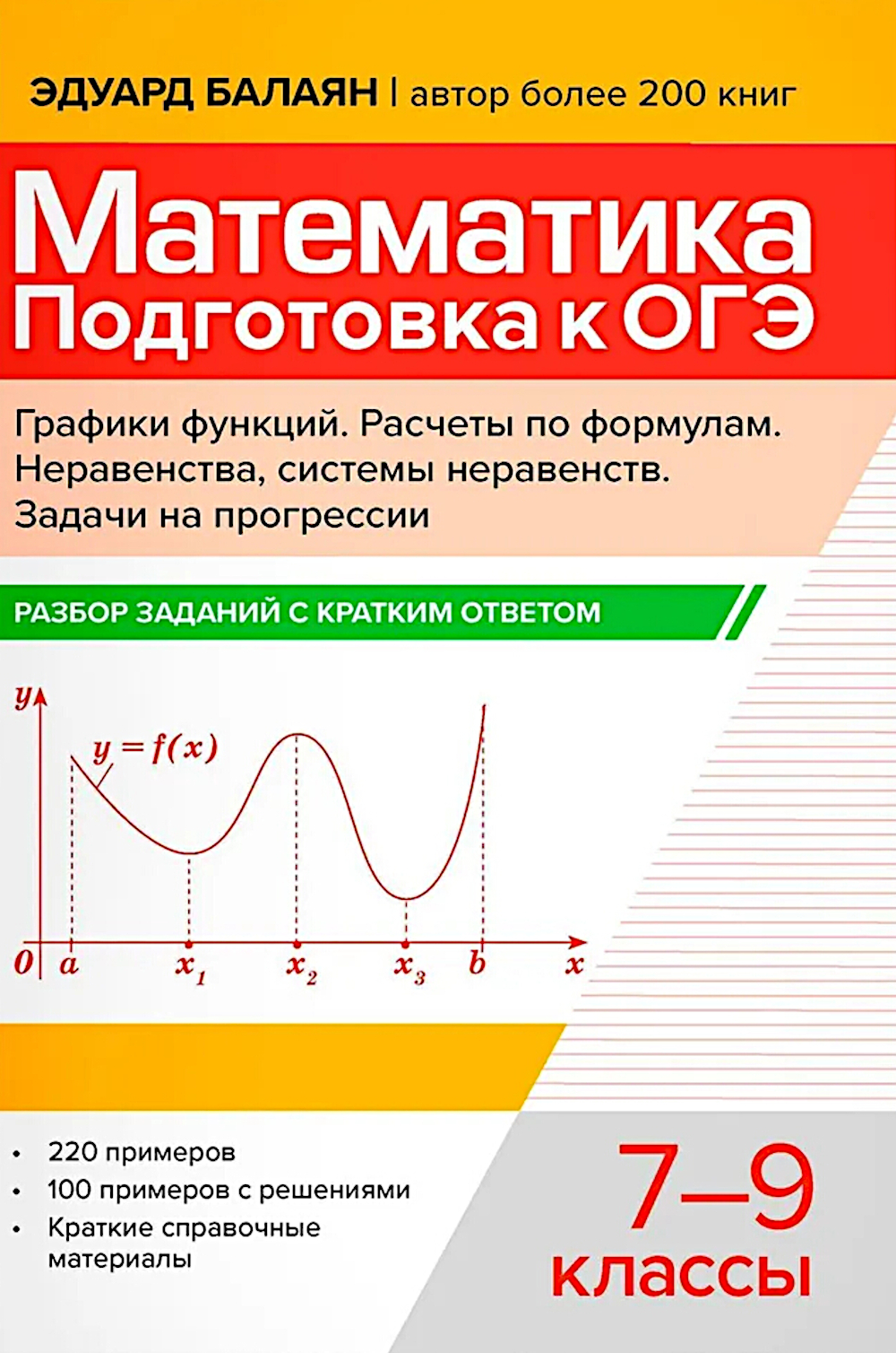 В предлагаемом пособии приводятся решения заданий с кратким ответом по темам, предлагаемым на ОГЭ: «Графики функций», «Расчеты по формулам», «Неравенства, системы неравенств», «Задачи на прогрессии». Все рассматриваемые темы снабжены подробными решениями и обоснованиями. В каждом параграфе даны задачи для самостоятельного решения, а в конце пособия - ответы к ним. В заключительной части пособия приведены справочные материалы. Пособие предназначено учащимся 7-9 классов для подготовки к ОГЭ, учителям математики и репетиторам.| Издательство | Феникс |