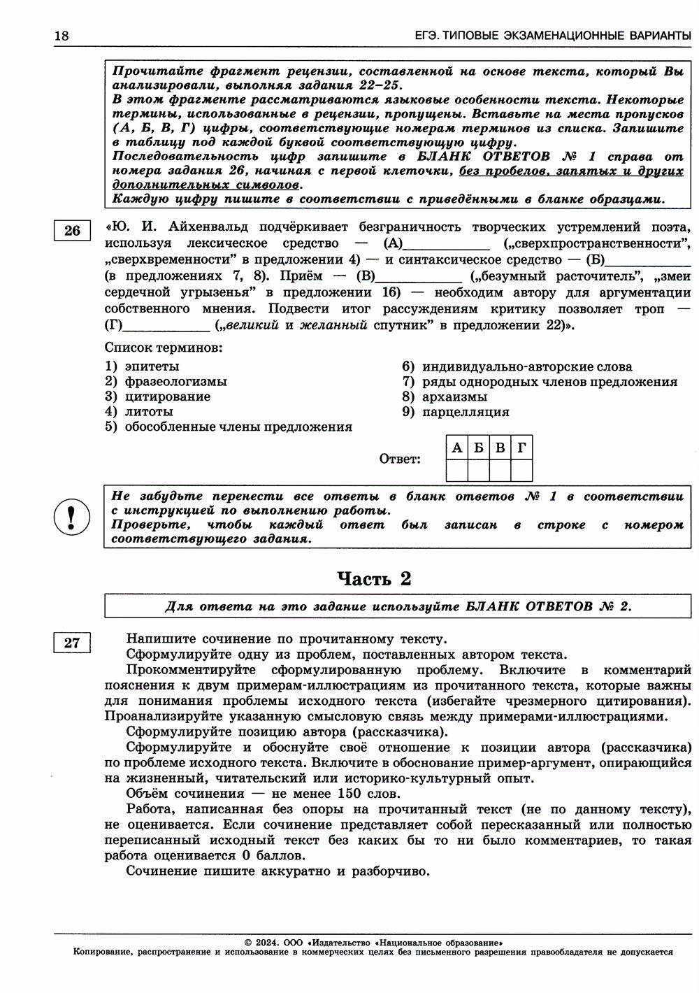 Аннотация: ЕГЭ-2024. Русский язык: типовые экзаменационные варианты: 36 вариантов