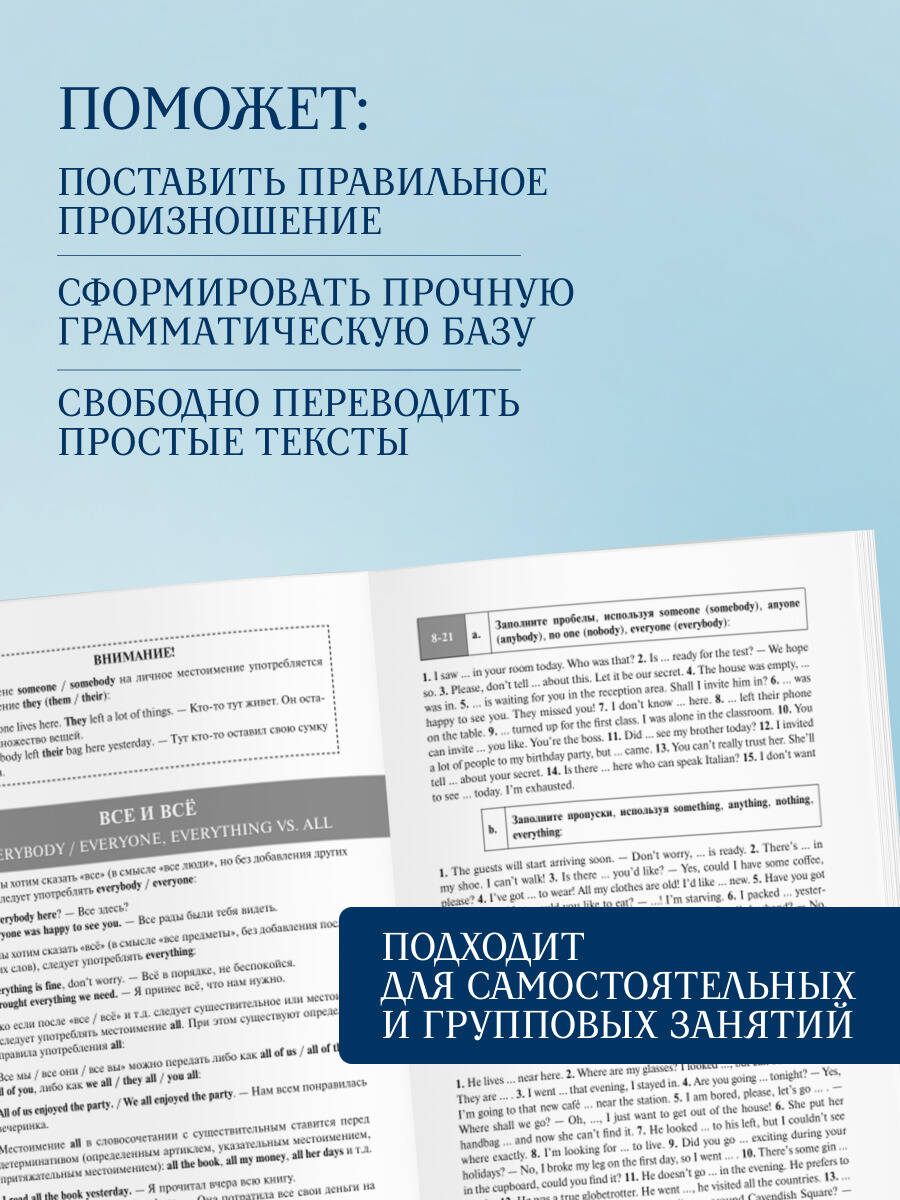 Начните изучение английского прямо сейчас - легко и уверенно! Это пособие создано специально для тех, кто делает первые шаги в языке. Над ним работали лучшие преподаватели РГГУ - одного из самых авторитетных вузов в сфере лингвистики и гуманитарного образования. Этот курс послужит крепким фундаментом для уверенного освоения английского языка - от нуля до уровня A2. Здесь всё продумано: - Чёткая структура. Каждый урок логично вытекает из предыдущего: темы грамотно распределены, чтобы вы не перегружались и при этом постоянно двигались вперёд. - Пошаговое освоение грамматики. Все правила объяснены простым языком по проверенному маршруту: от простого к сложному. - Изучение необходимой лексики. В каждом уроке - тематический словарь, включающий самые нужные слова и выражения. - Множество упражнений, тесты для самопроверки и даже кроссворды, чтобы учиться было интересно. - Заметный прогресс уже на старте. Уже с первых уроков вы увидите реальные результаты: начнёте строить простые фразы, понимать тексты и уверенно использовать базовую лексику. С этим пособием вы почувствуете уверенность уже с первых страниц. Английский - это не сложно. Особенно, когда вас ведут профессионалы!| Издательство | ООО "Издательство "Эксмо" |